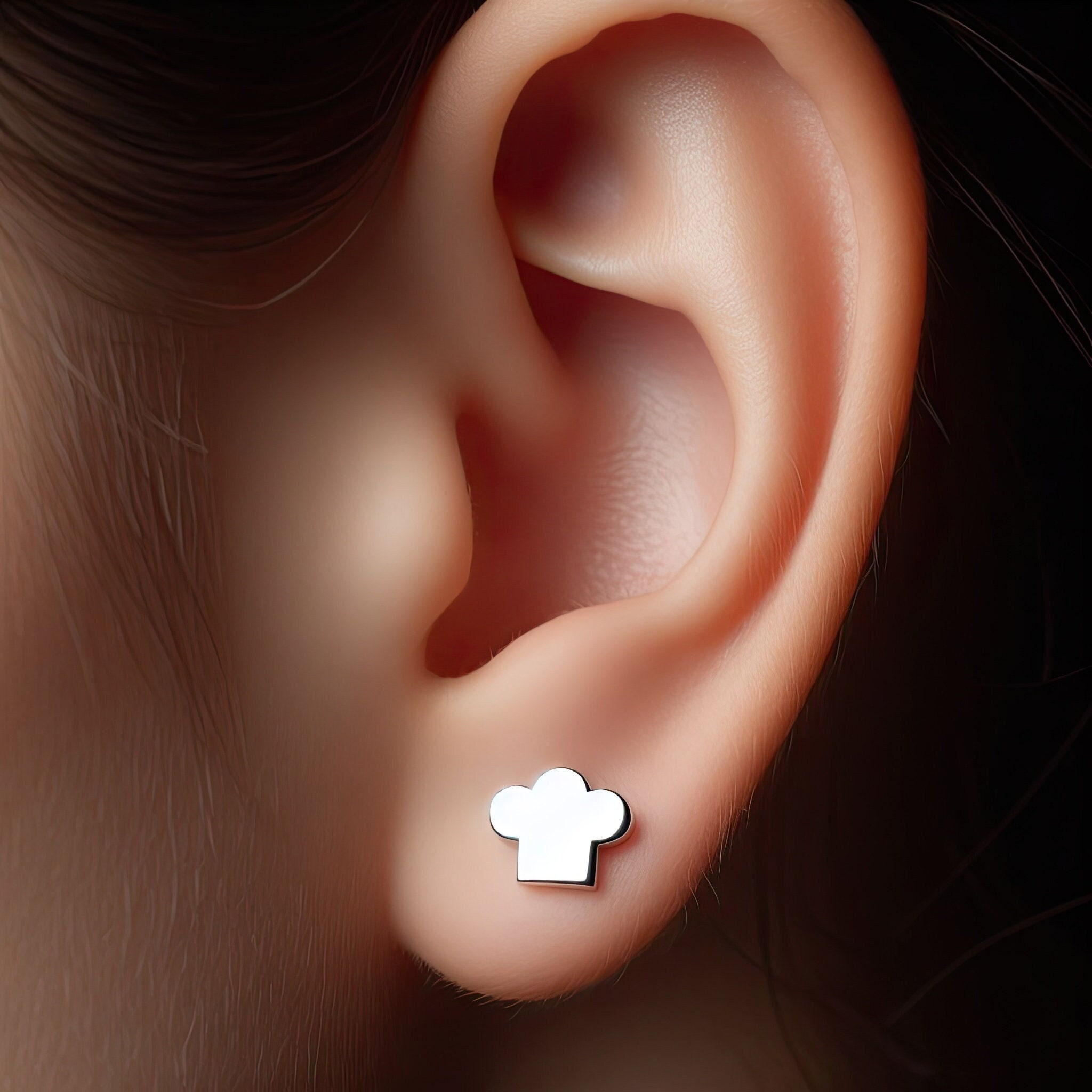 Gold Chef Earrings Silver Minimalist Chef Jewelry Gold Chef Hat Ear...