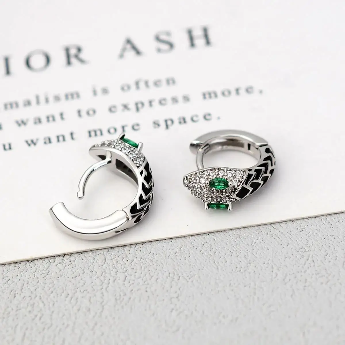Women's Inlay Rhinestone Snake Huggies Earrings Shiny Crystal Zirco...