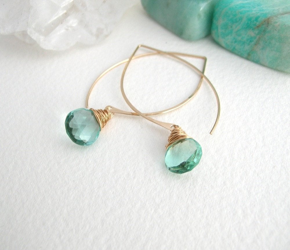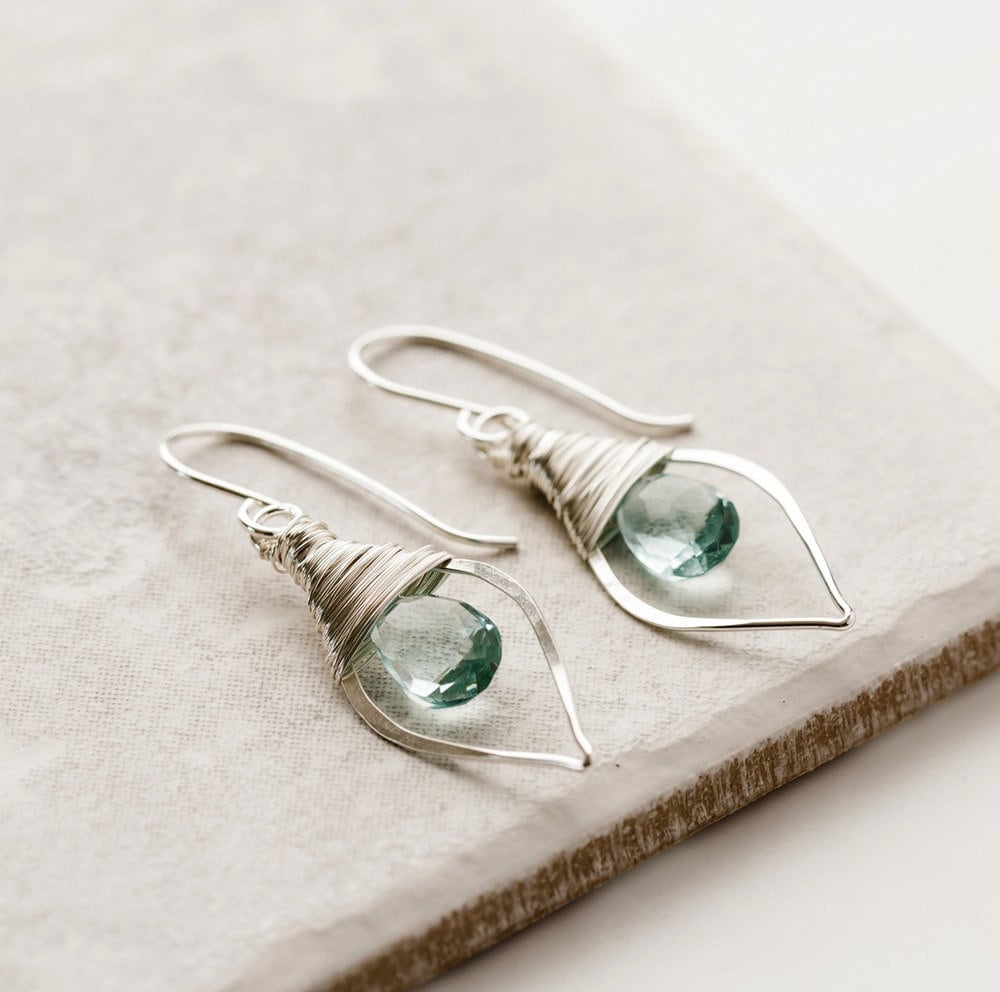 Aquamarine Quartz Leaf Hoops, March Birthstone, March Birthday Gift...
