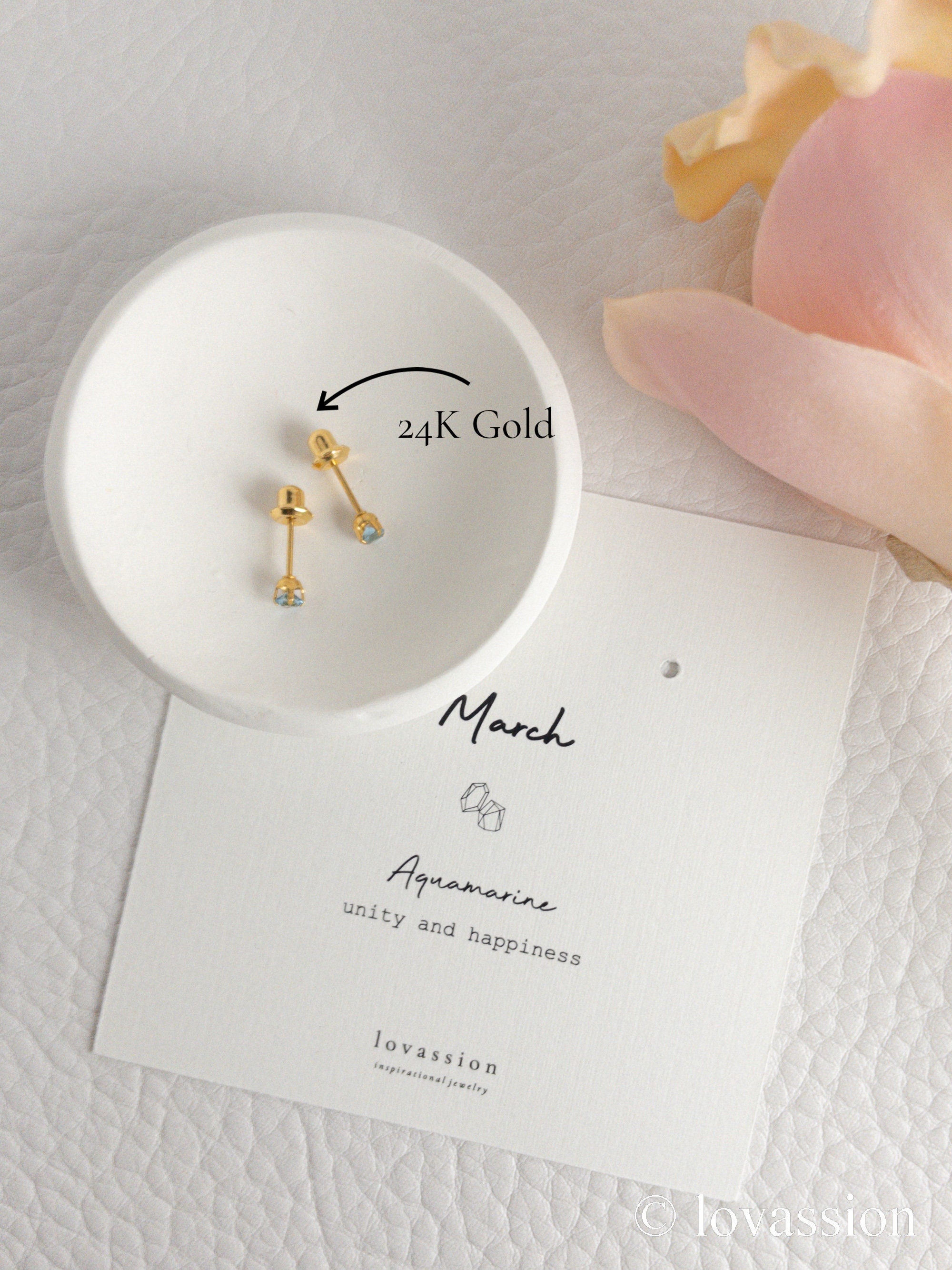 24K Gold March Birthstone Studs * march birthstone earrings * 3mm a...