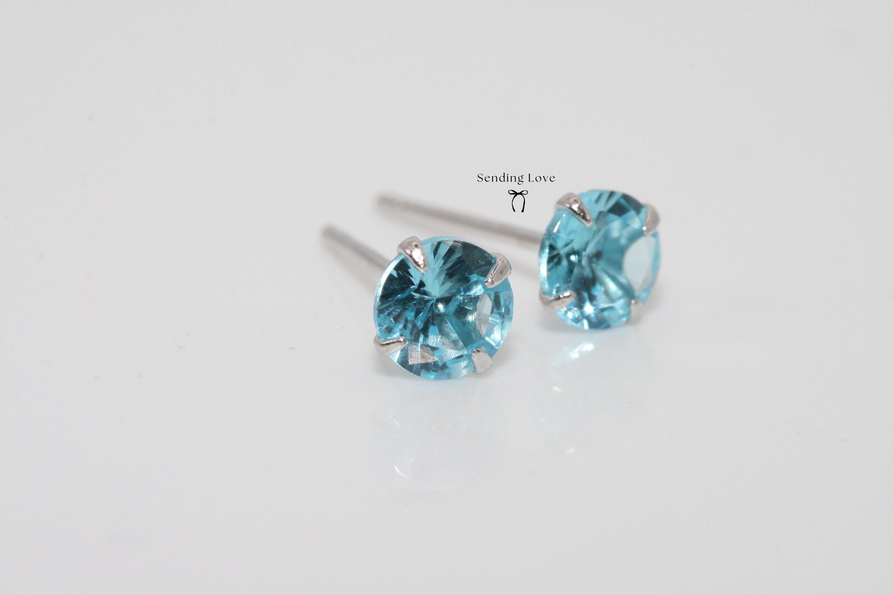 Aquamarine March Birthstone 925 Silver Stud Earrings | March Births...