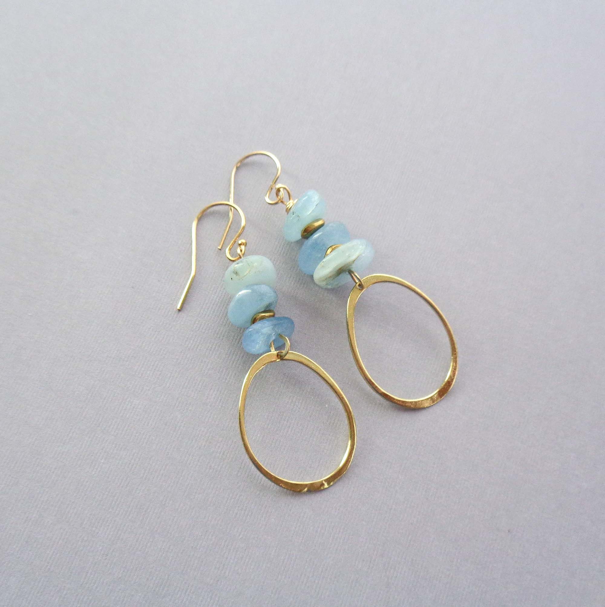 Aquamarine Earrings / Organic Aquamarine Saucers Stack Hoops / Marc...