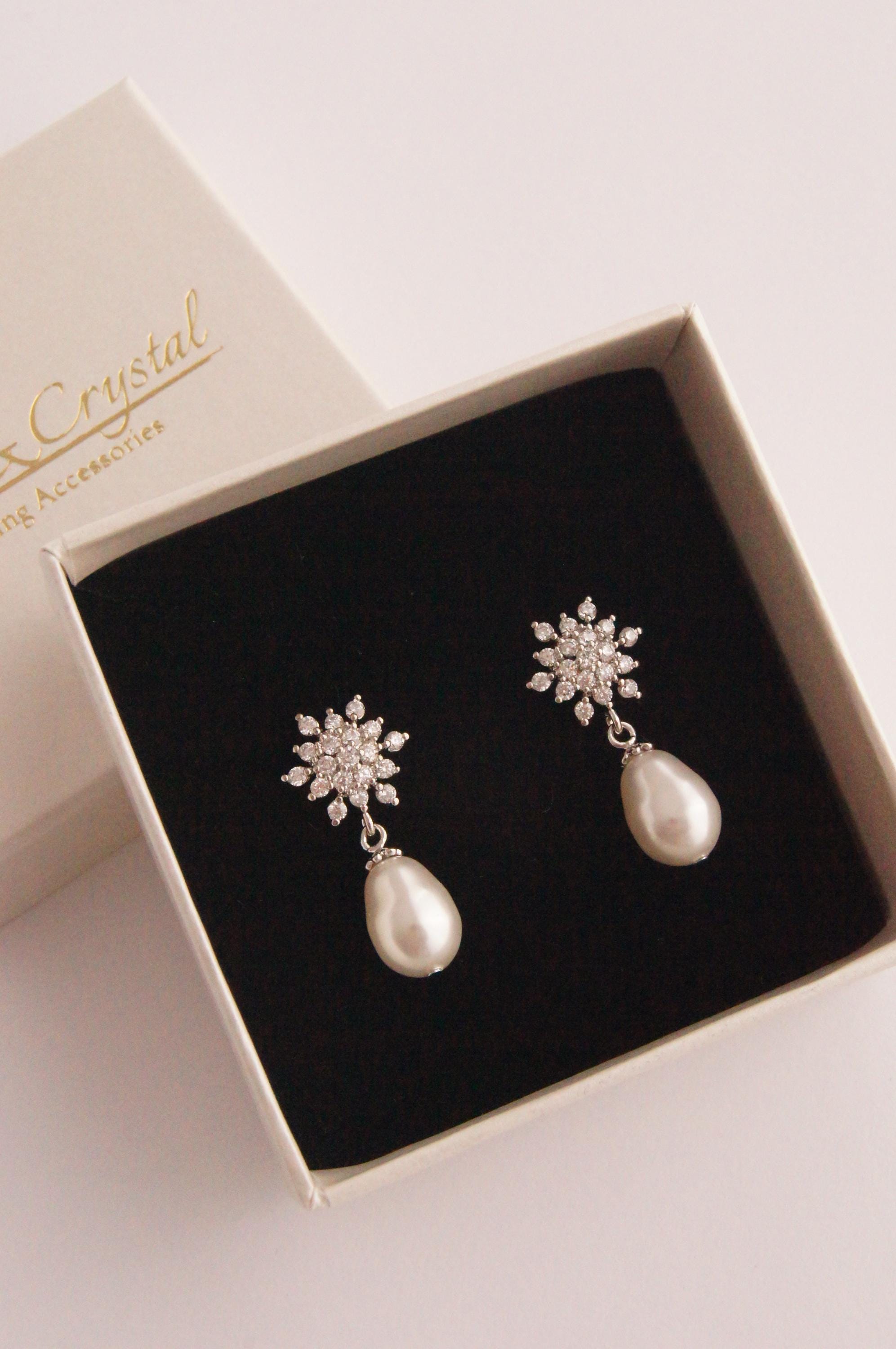 Bridal earrings, crystal bridal earrings, pearl bridal earrings, br...