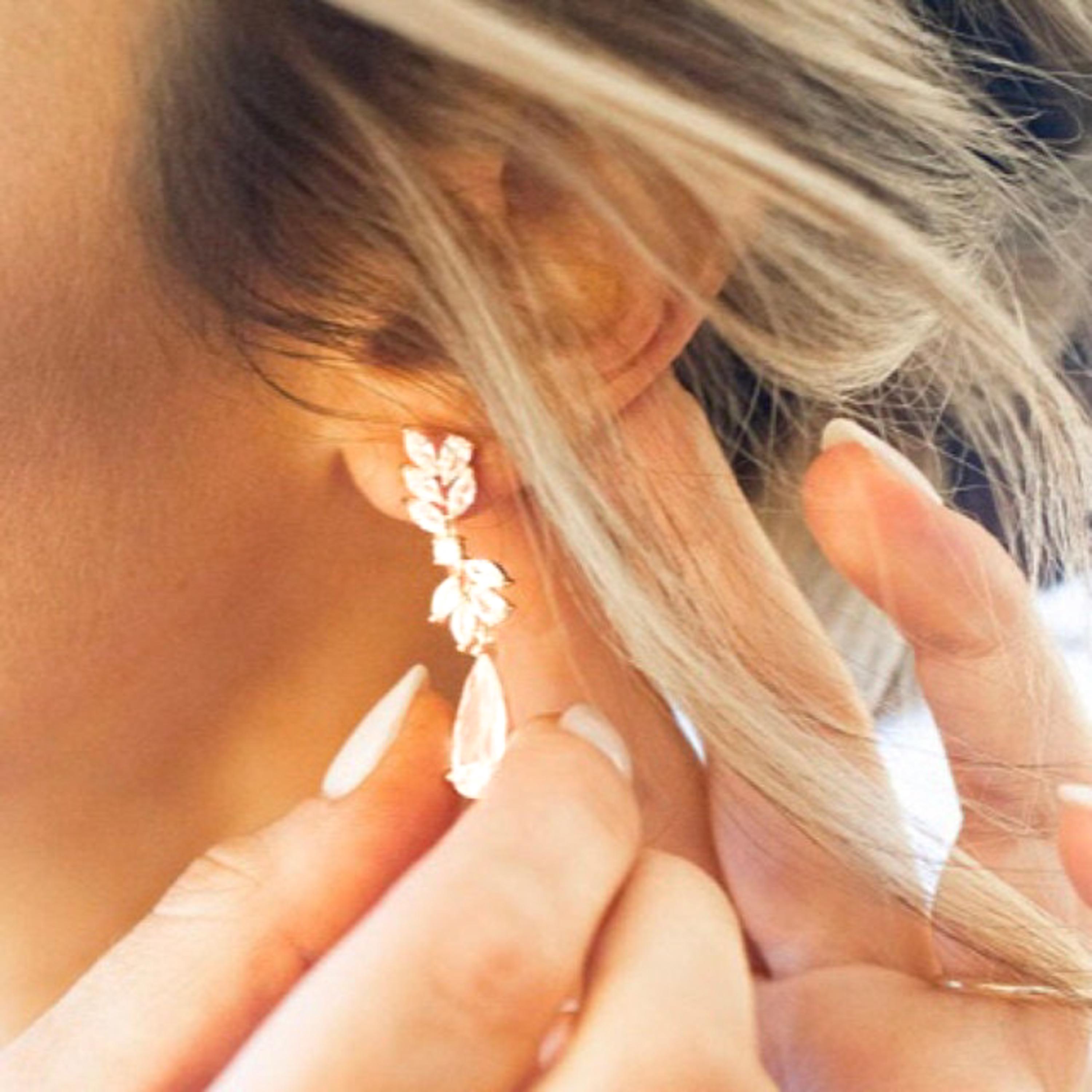 Leaf Bridal Earrings Rose Gold Wedding Earrings Leaf Bridal Earring...