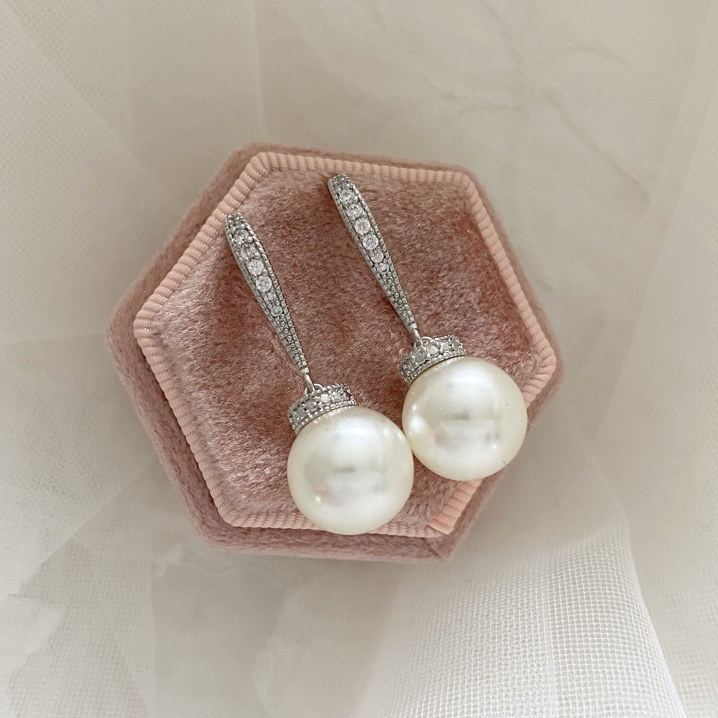 Lillian ~ Pearl bridesmaid earrings, silver wedding earrings for br...