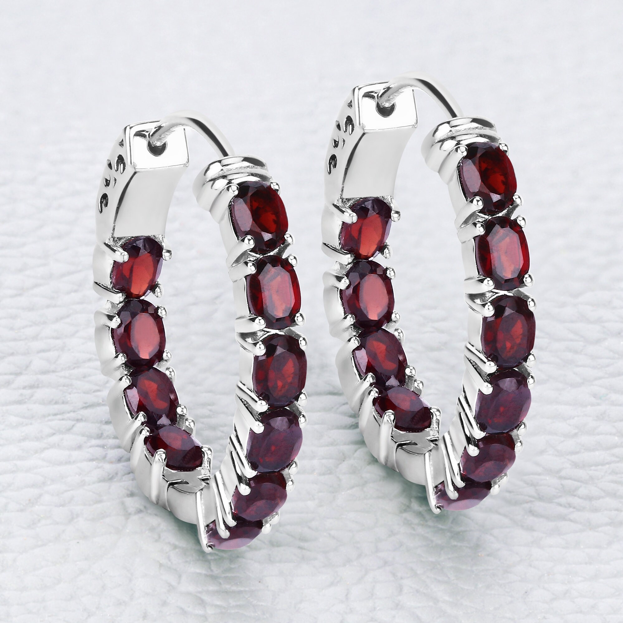 Garnet Earrings, Genuine Garnet Hoop Silver Earrings for Women, Nat...