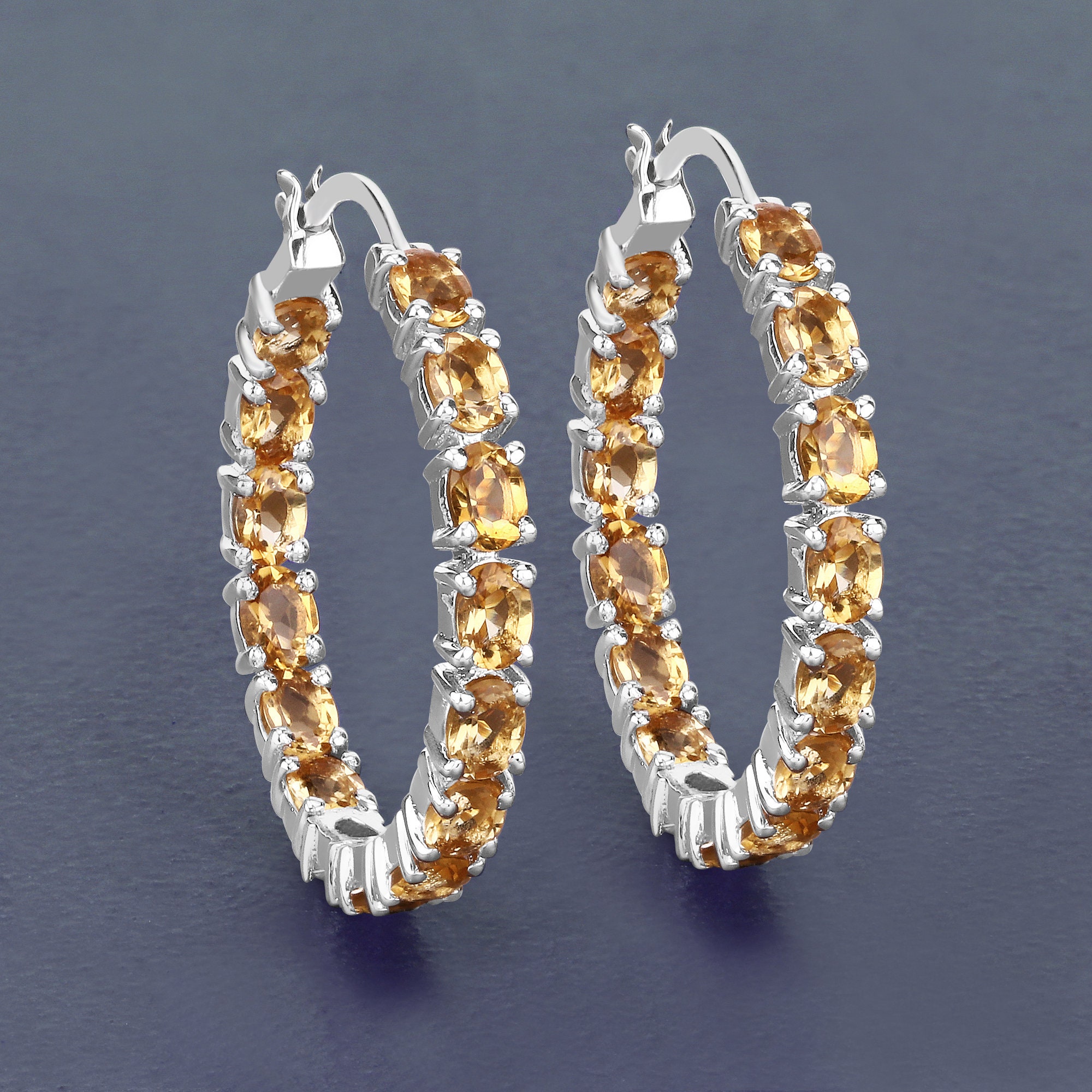 Citrine Earrings, Genuine Citrine Hoop Silver Earrings for Women, N...
