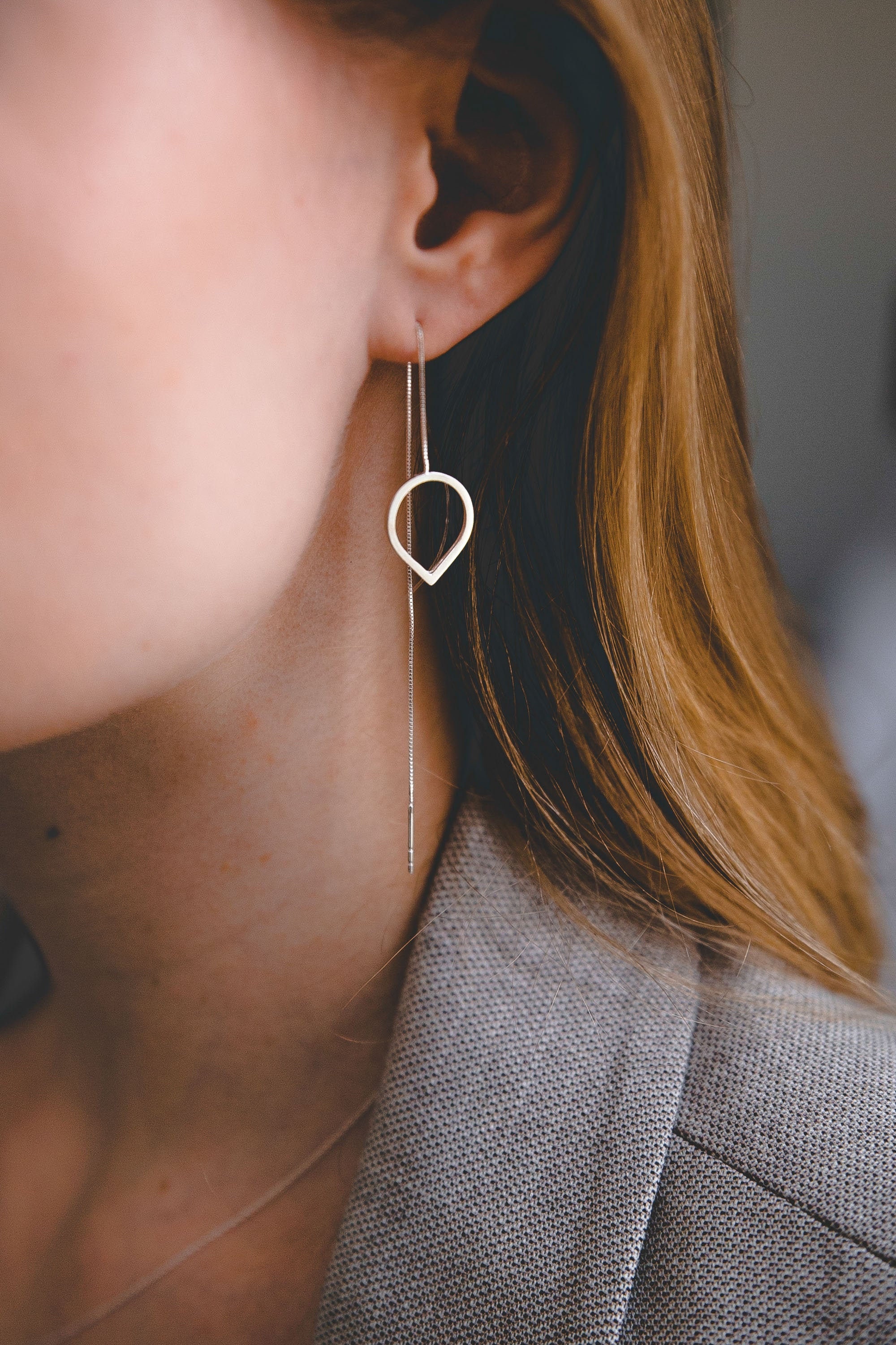 These beautiful and minimal extra long teardrop chain earrings are handmade of 925 sterling silver. ...