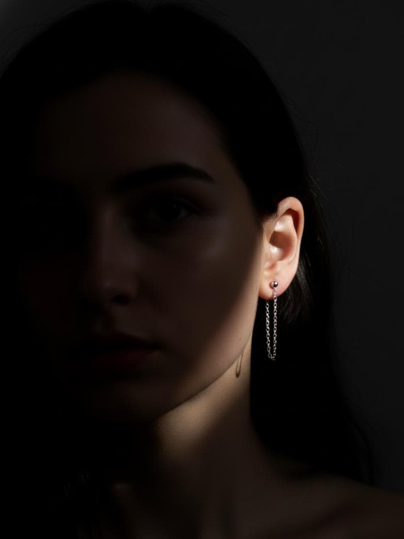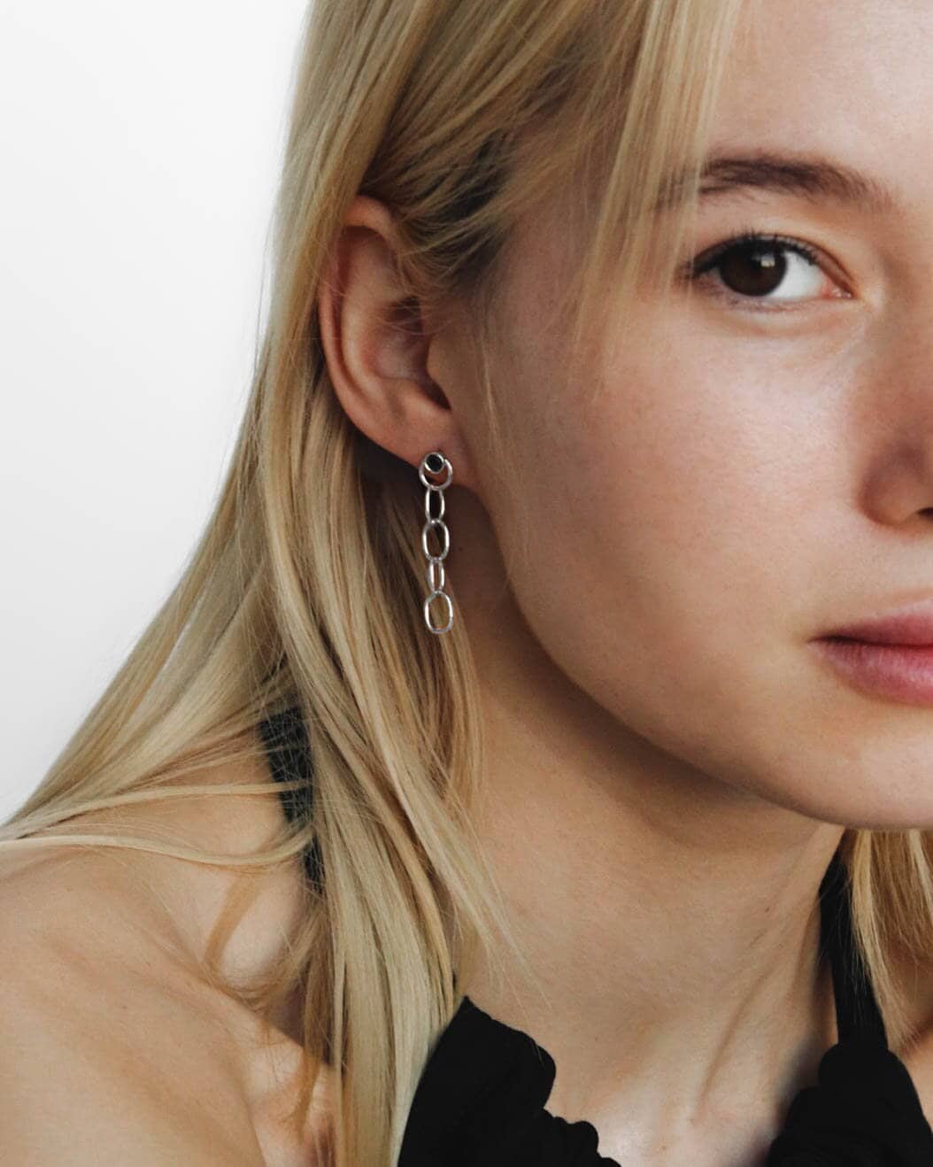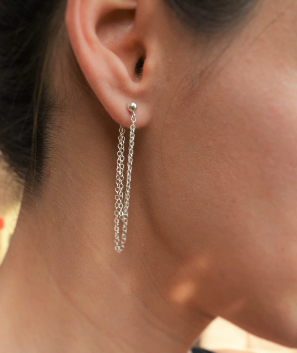 Small 3mm silver Ball Stud chained to the backing. Wear them both or wear them solo! These earrings ...