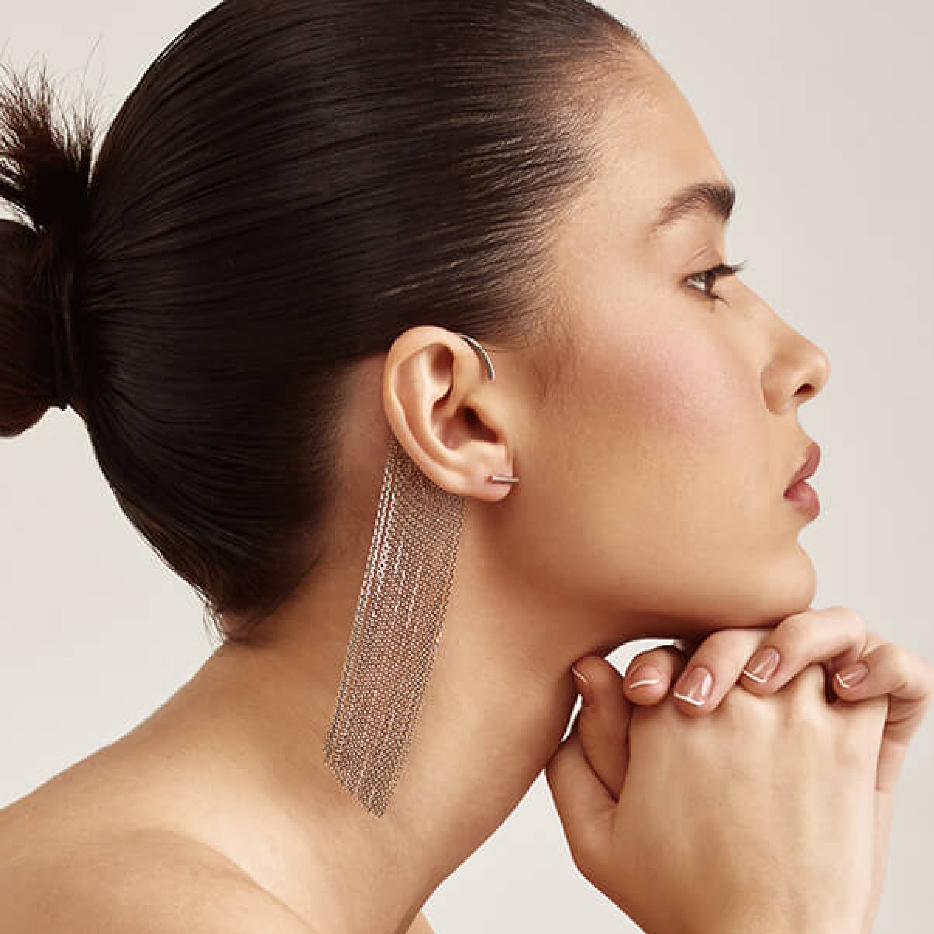 925 Sterling Silver Chain Tassel Ear Wrap Earring, Long Dangle Chain Earring, Silver Chandelier Cuff...