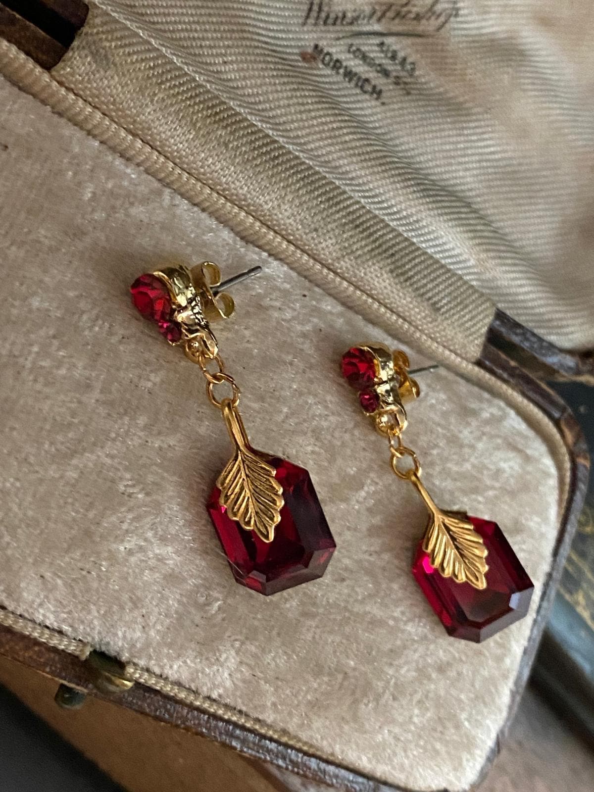 Vintage Butler and Wilson Ruby Swarovski Crystal Drop Earrings