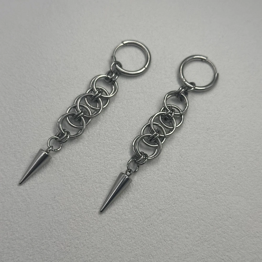 Handmade Stainless Steel Chainmail Spike Drop Earrings Alternative ...