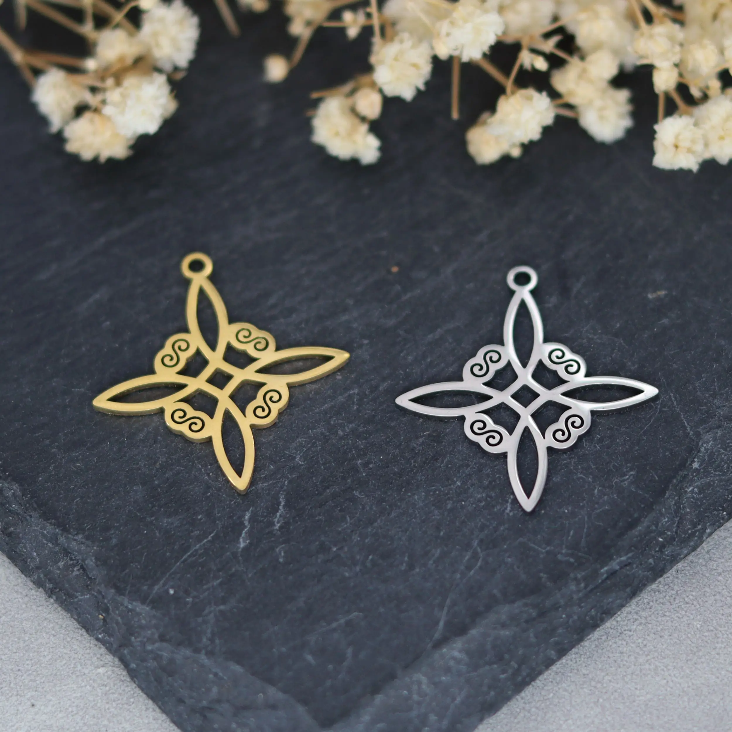 3pcs Witch Knot Charms for Jewelry Making Necklace Earrings Wiccan Cross Stainless Steel Pendant Cel...