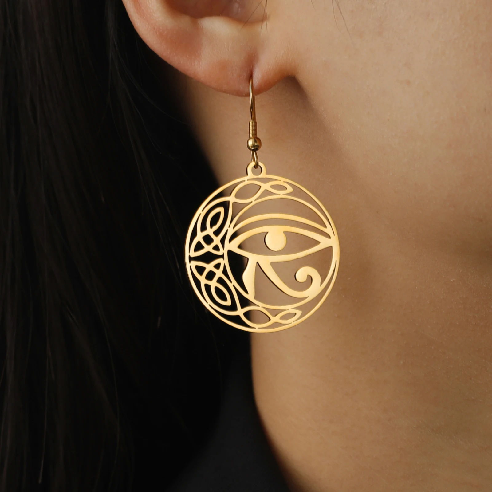 Horus Eye Witch Knot Women's Earrings Stainless Steel Hollow Ancien...