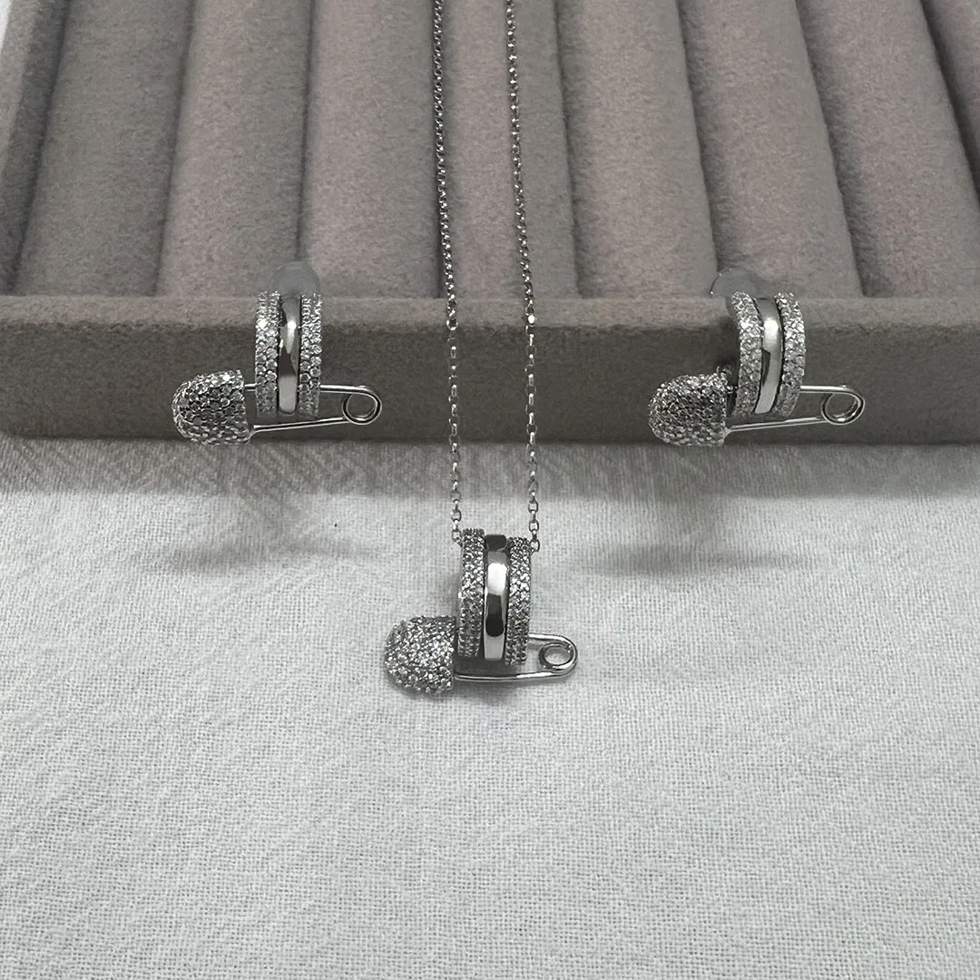 Luxurious High-End Inlaid Three Circle Round Women's Necklace And E...