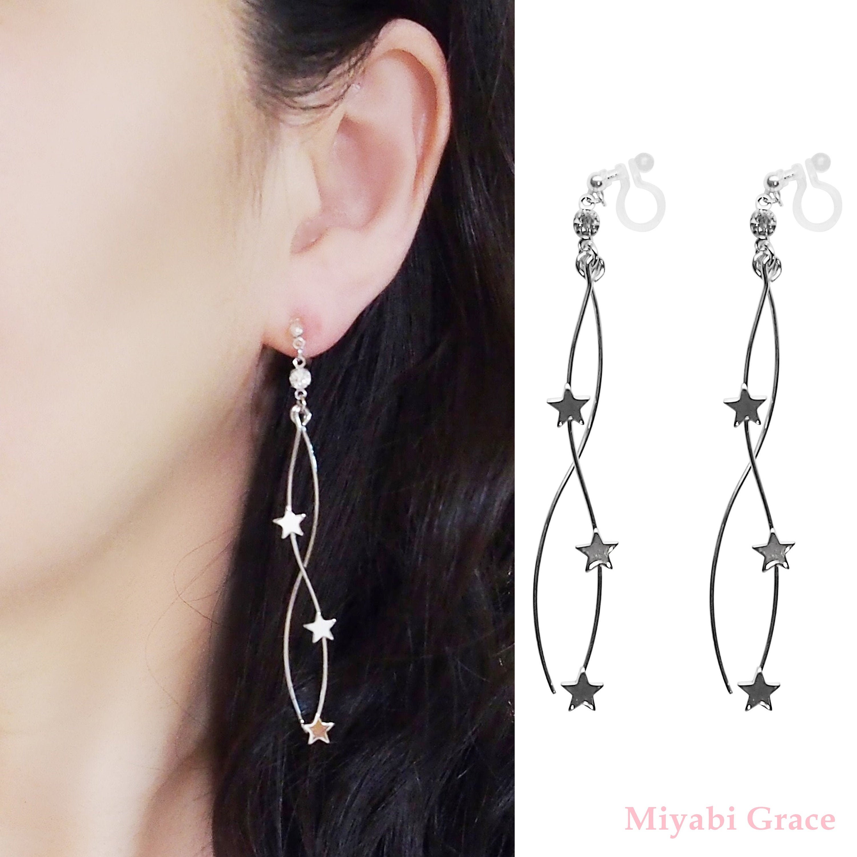Star clip on earrings, invisible clip on earrings, non pierced earrings, clip on earrings dangle, si...