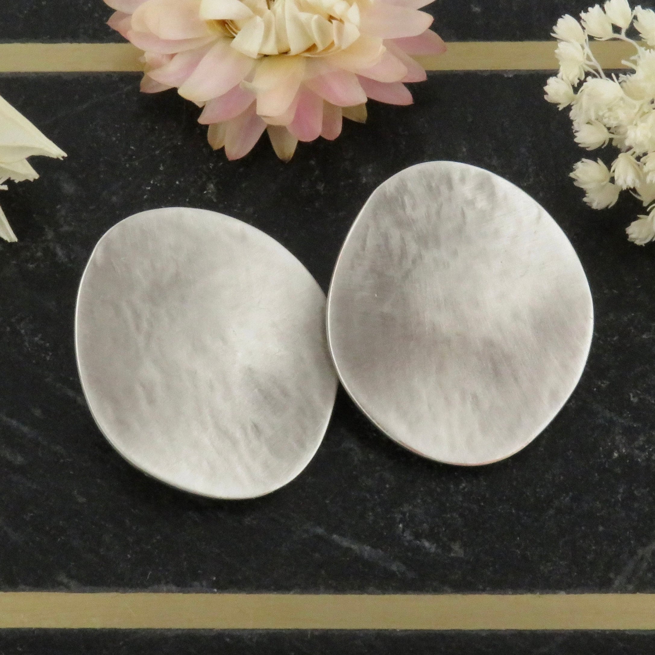 Hammered silver clip-on oval earrings - Lightweight and comfortable clip-ons - Sterling silver plate...