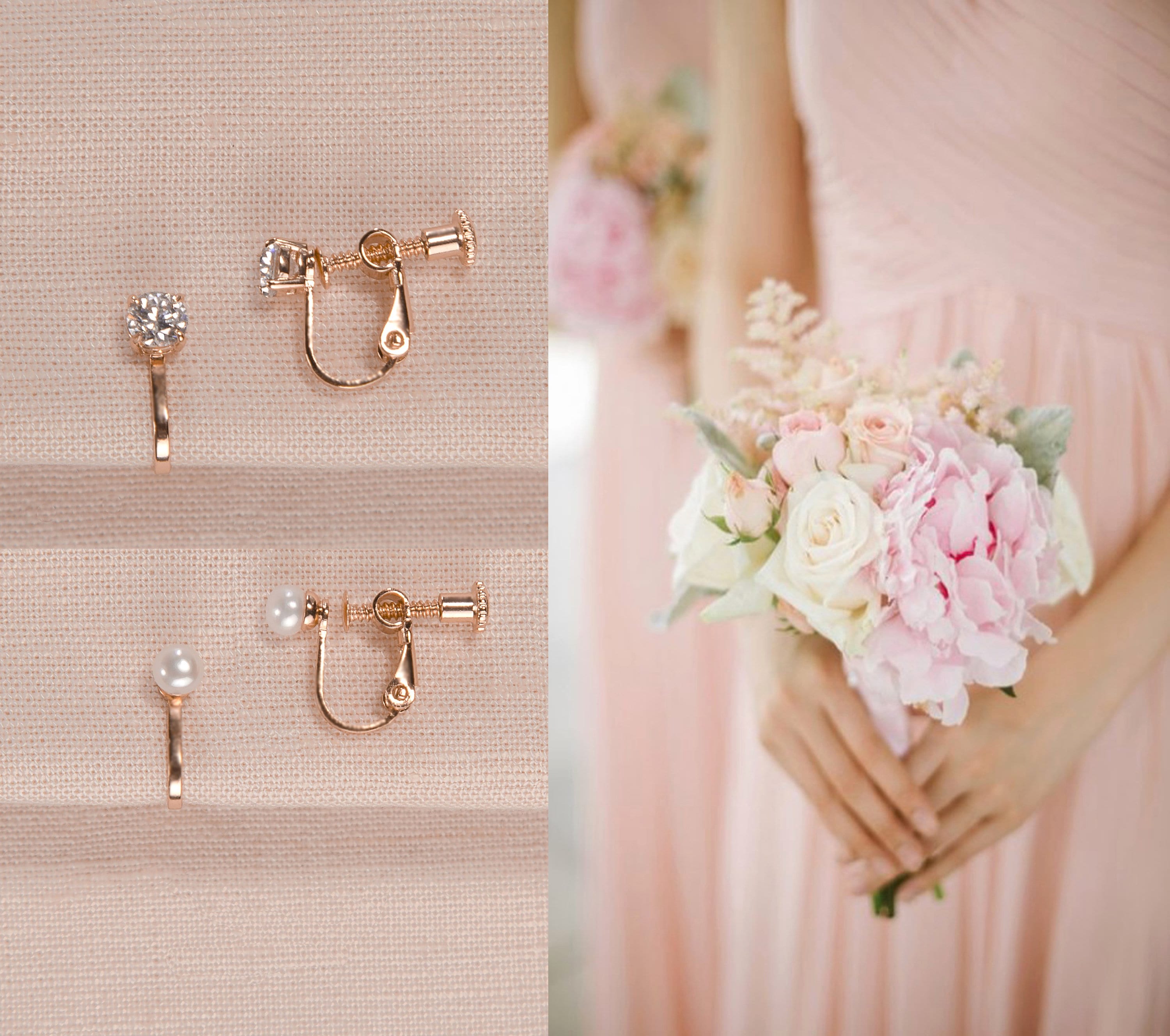 Clip On Earrings, Rose Gold Clip On Earrings, Bridal Rose Gold Earr...