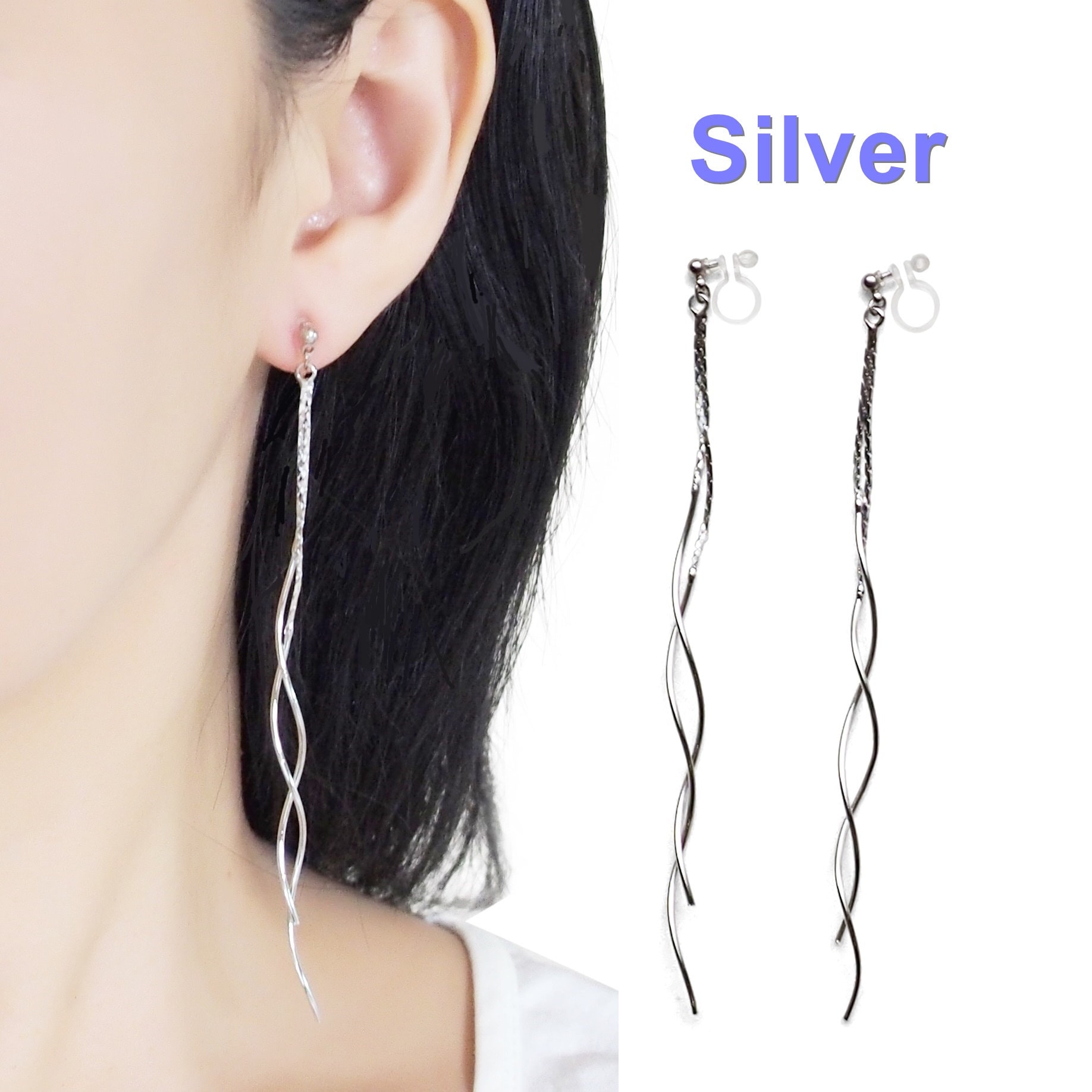 Silver clip on earrings dangle. invisible clip on earrings. twisted...