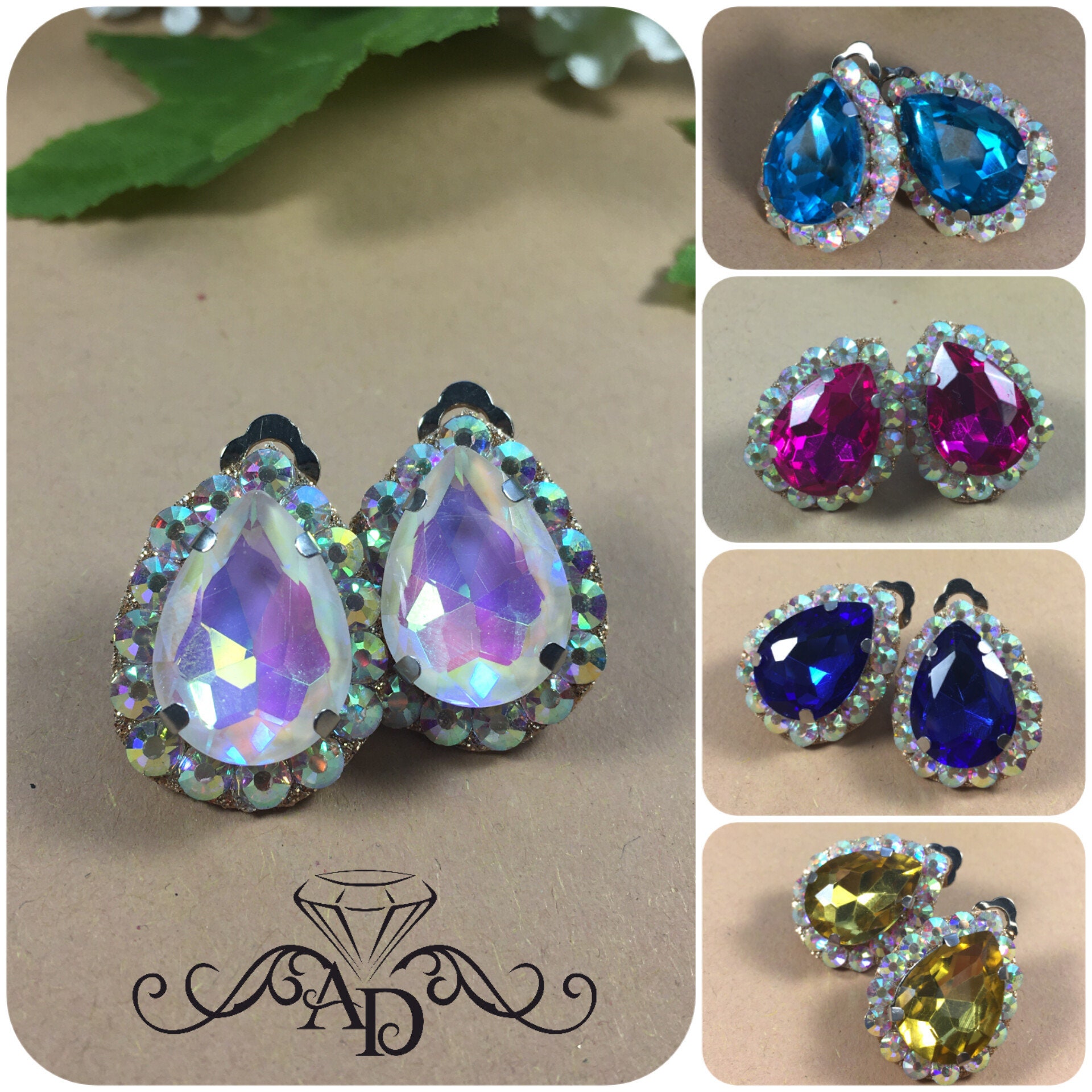 Rhinestone clip on earrings, ballroom clip on earrings, weiss clip ...