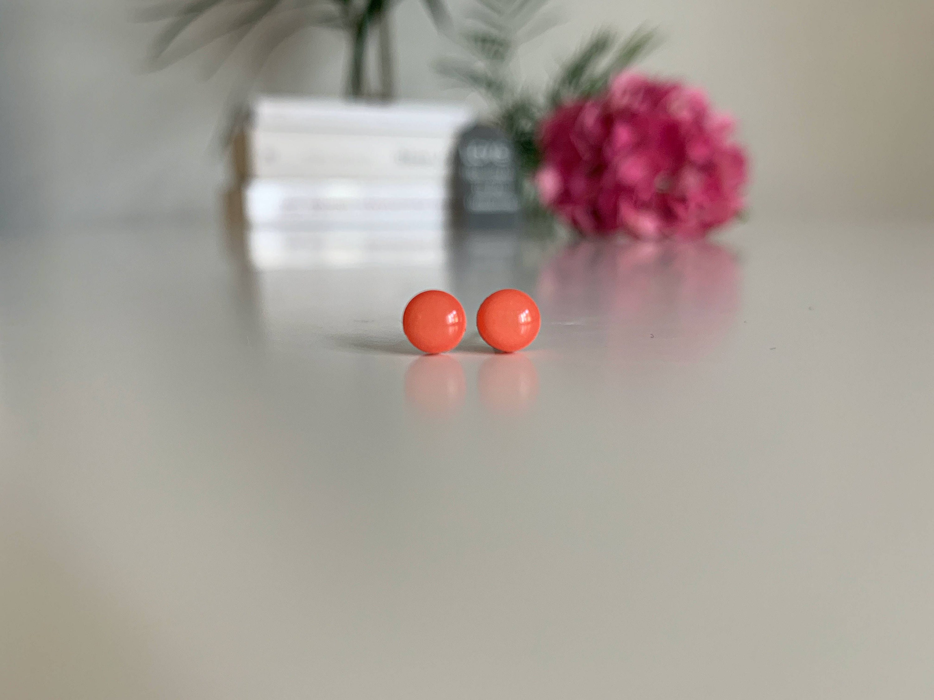 Coral earrings, Tiny coral studs earrings, 6 mm studs, Living coral...