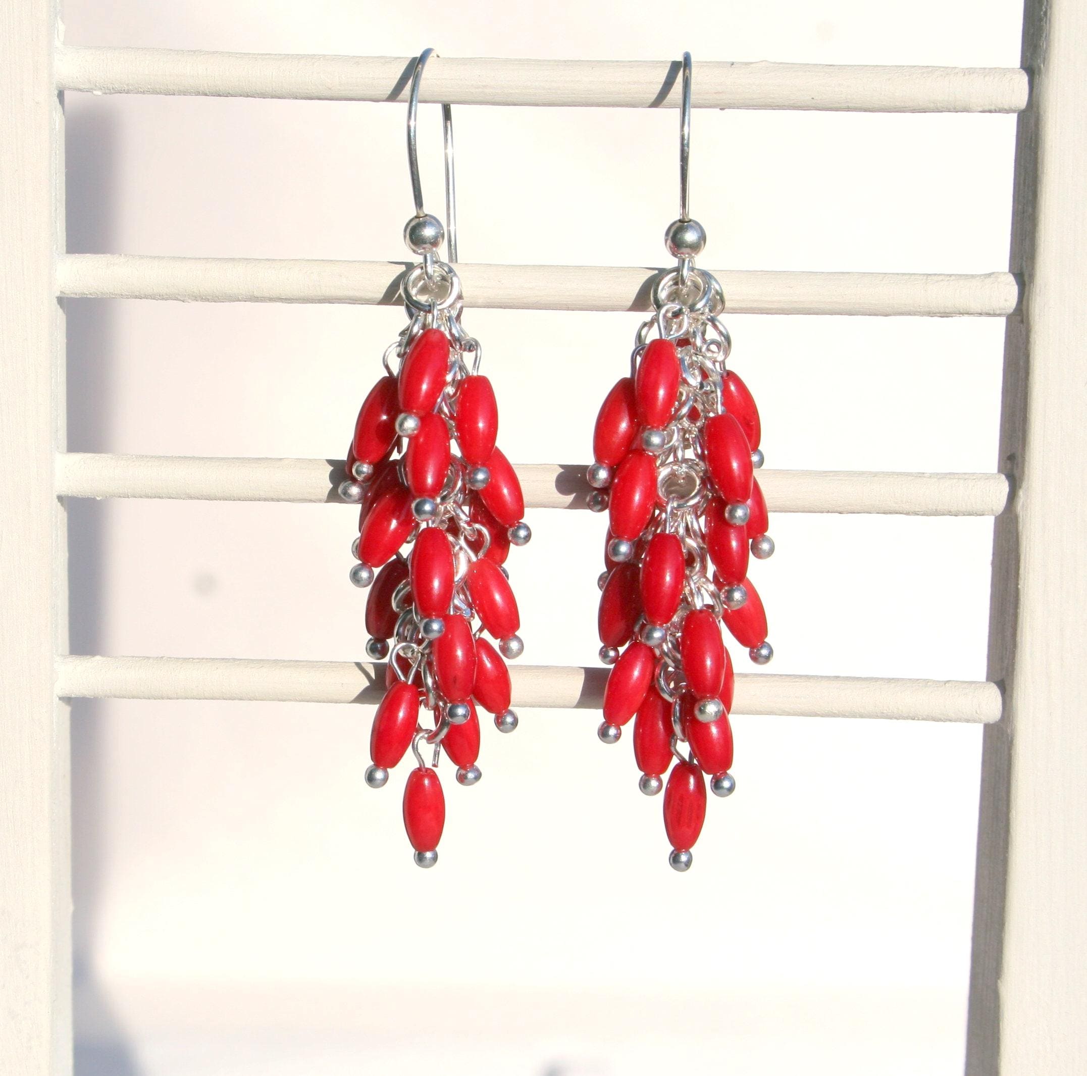 Red Coral Earrings, Red Coral Jewelry, Red Elegant Earings, Red Cor...