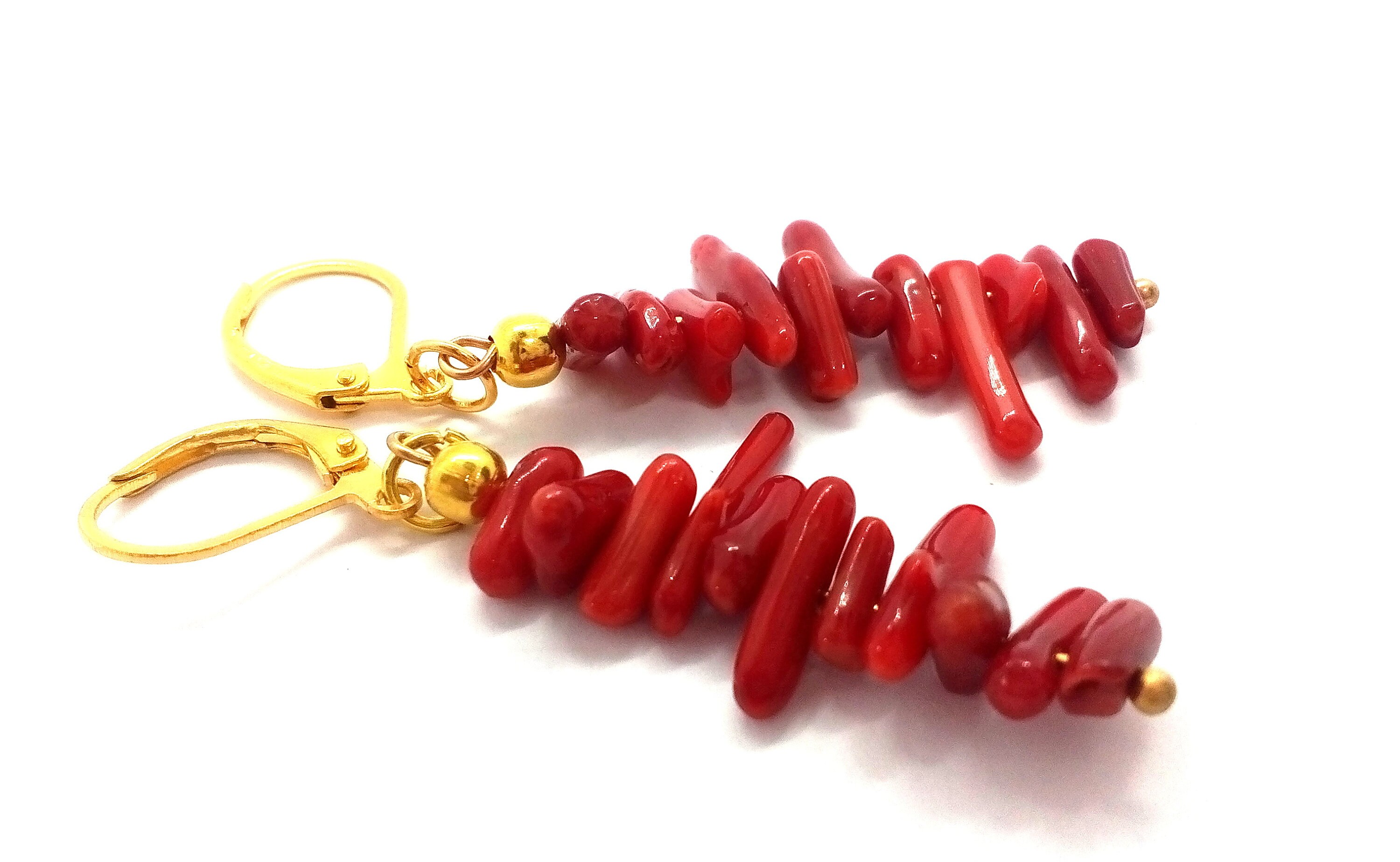 Red coral earrings, red coral branches, coral earrings, red coral, ...