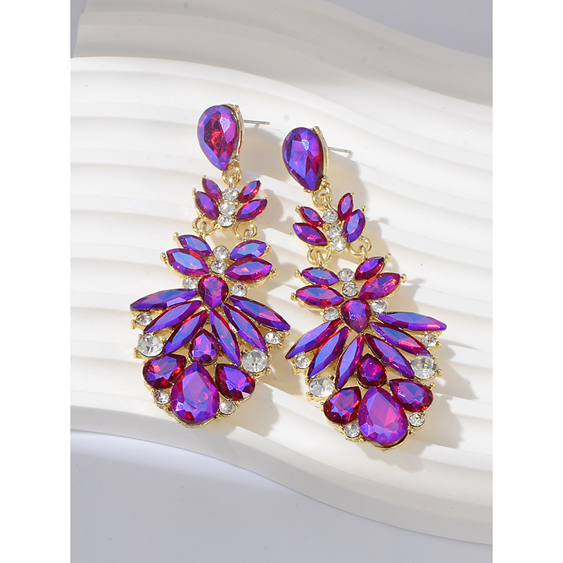Women's Elegant Purple Crystal Tassel Drop Earrings – Glamoro...