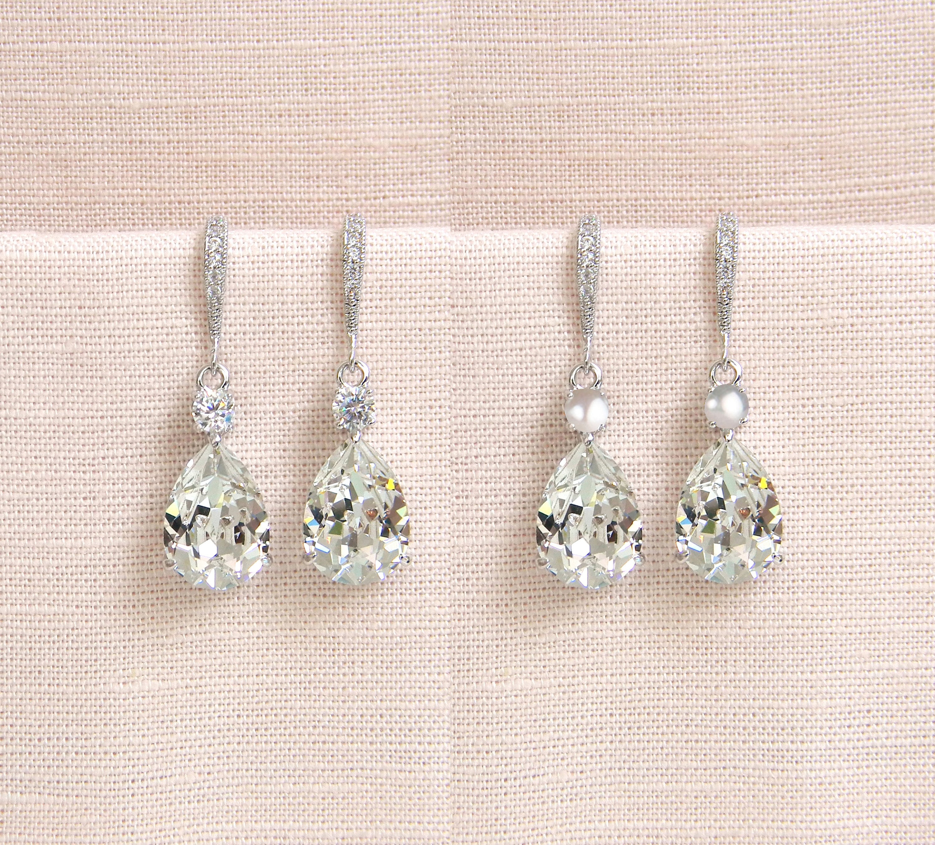Crystal Bridal earrings Wedding jewelry Bridal Necklace Swarovski C...