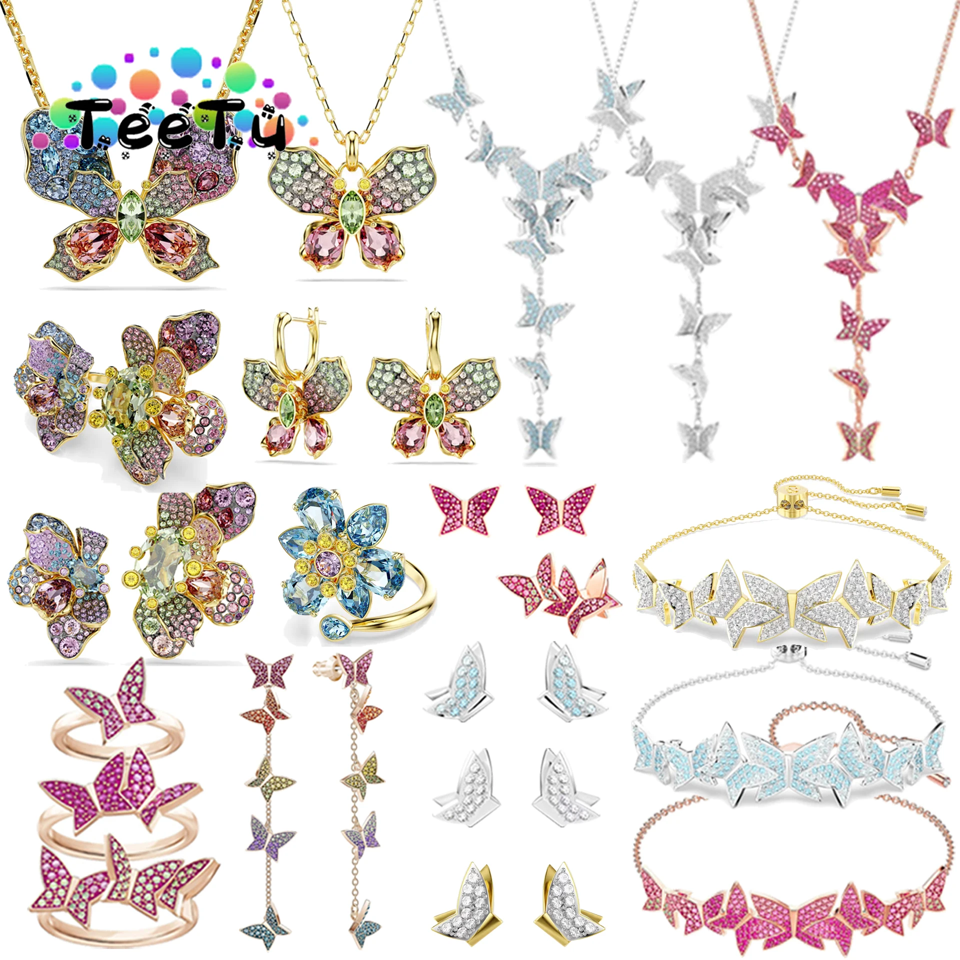 2026 New Trend Luxury Crystal Set Charming Pink Gold Butterfly Crystal Fashion Necklace Bracelet Ear...