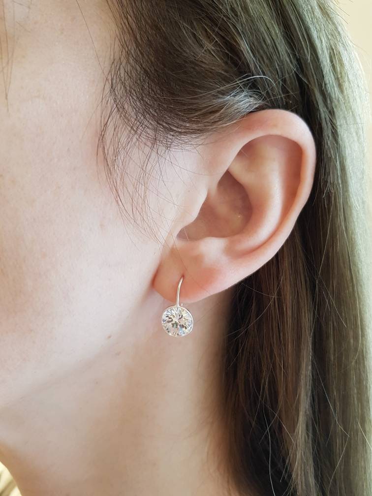 -Dainty Cubic zirconia hook earrings -Hand made silver hook earrings -10mm cubic zirconia - High qua...