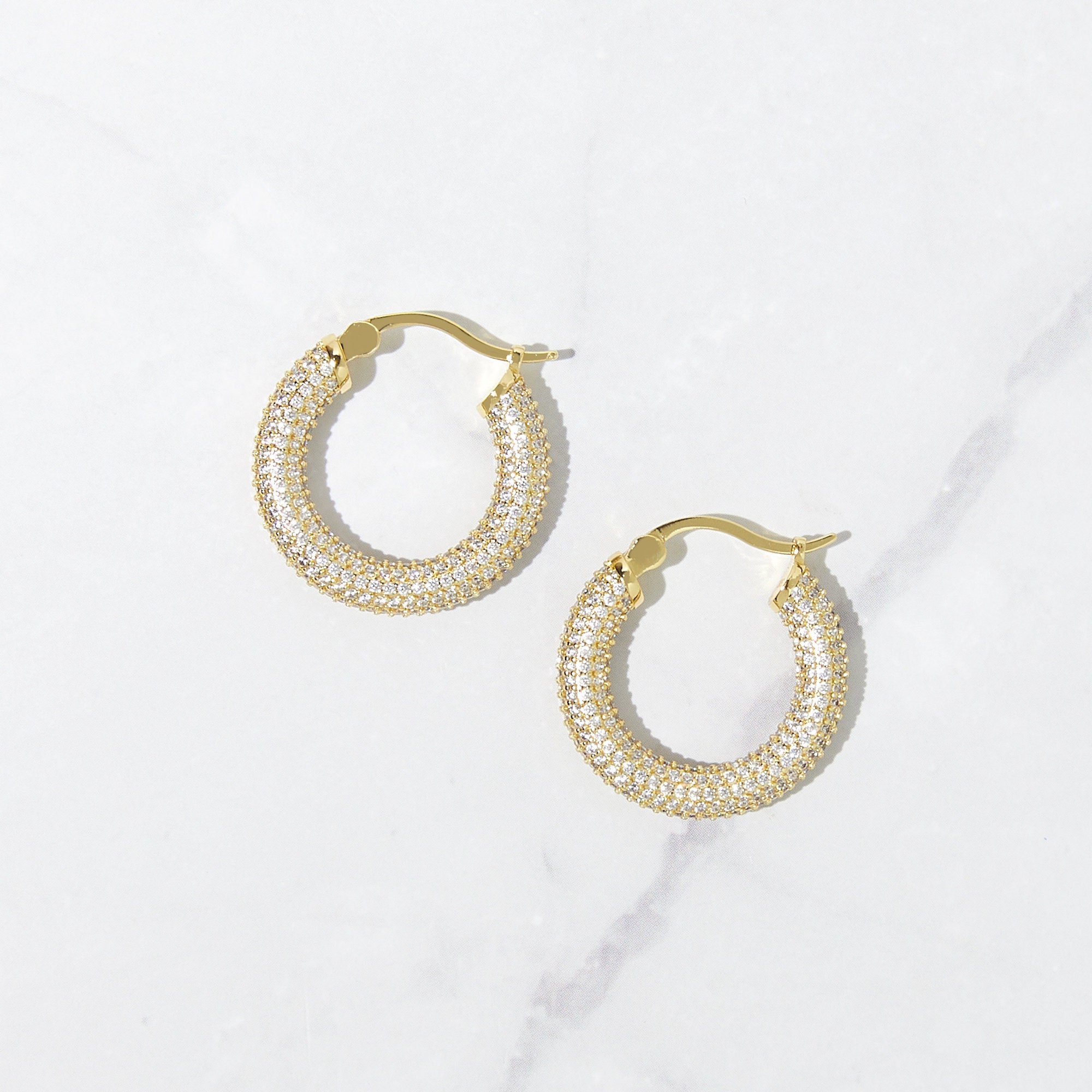 Pave Tube Hoop Earrings are the perfect statement piece. They sparkle like no other, and will truly ...