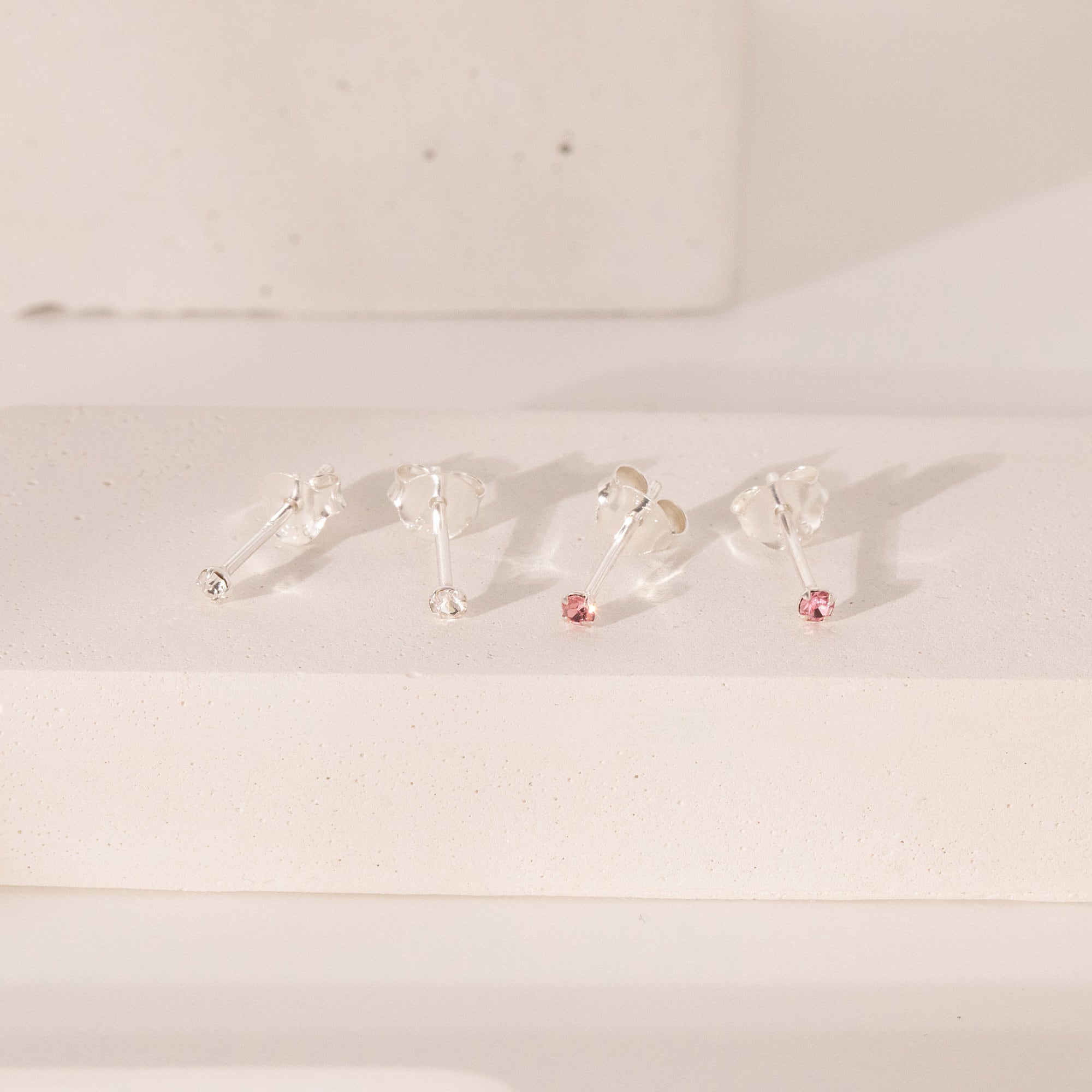 Set of 2 Pairs Pink and White Cubic Zirconia Stud Earrings for Wome...