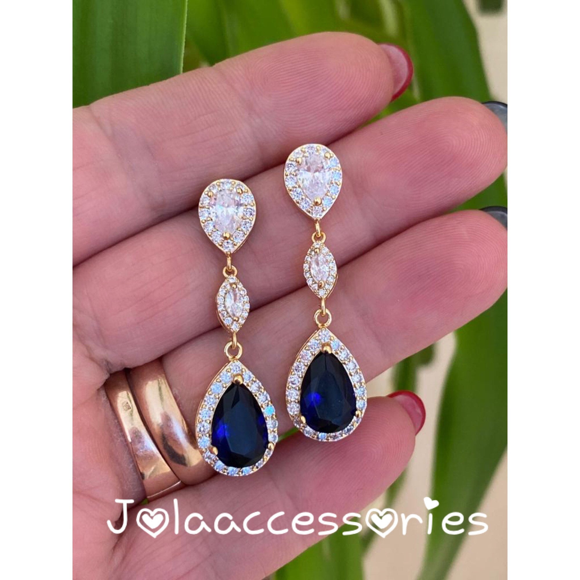 Zirconia gold sapphire blue bridal wedding earrings vintage style c...