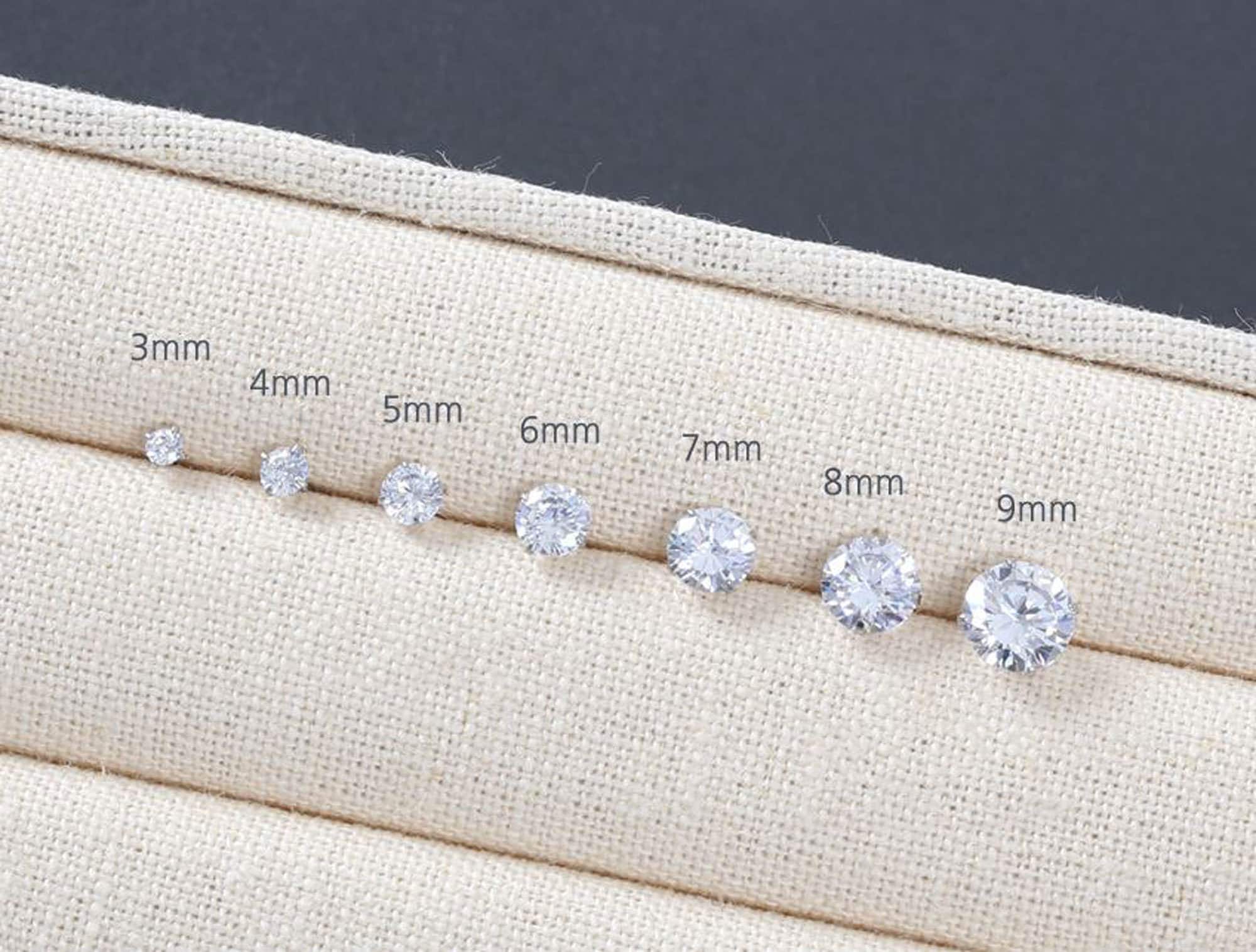 "These earrings are a pair. AAA CZ Diamond Studs-Silver Four Prong Round Sparkle Studs-Clear CZ...