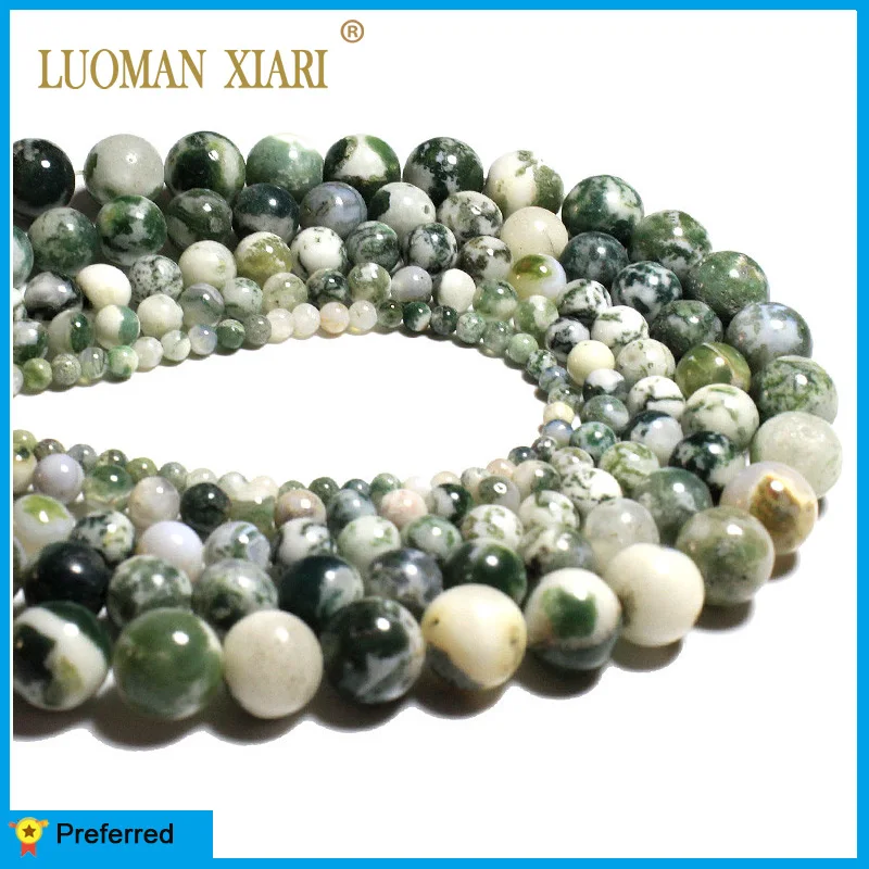 Natural Stone Beads Dendritic Tree Agate Loose Round Spacer Bead For Jewelry Making DIY Bracelet Ear...