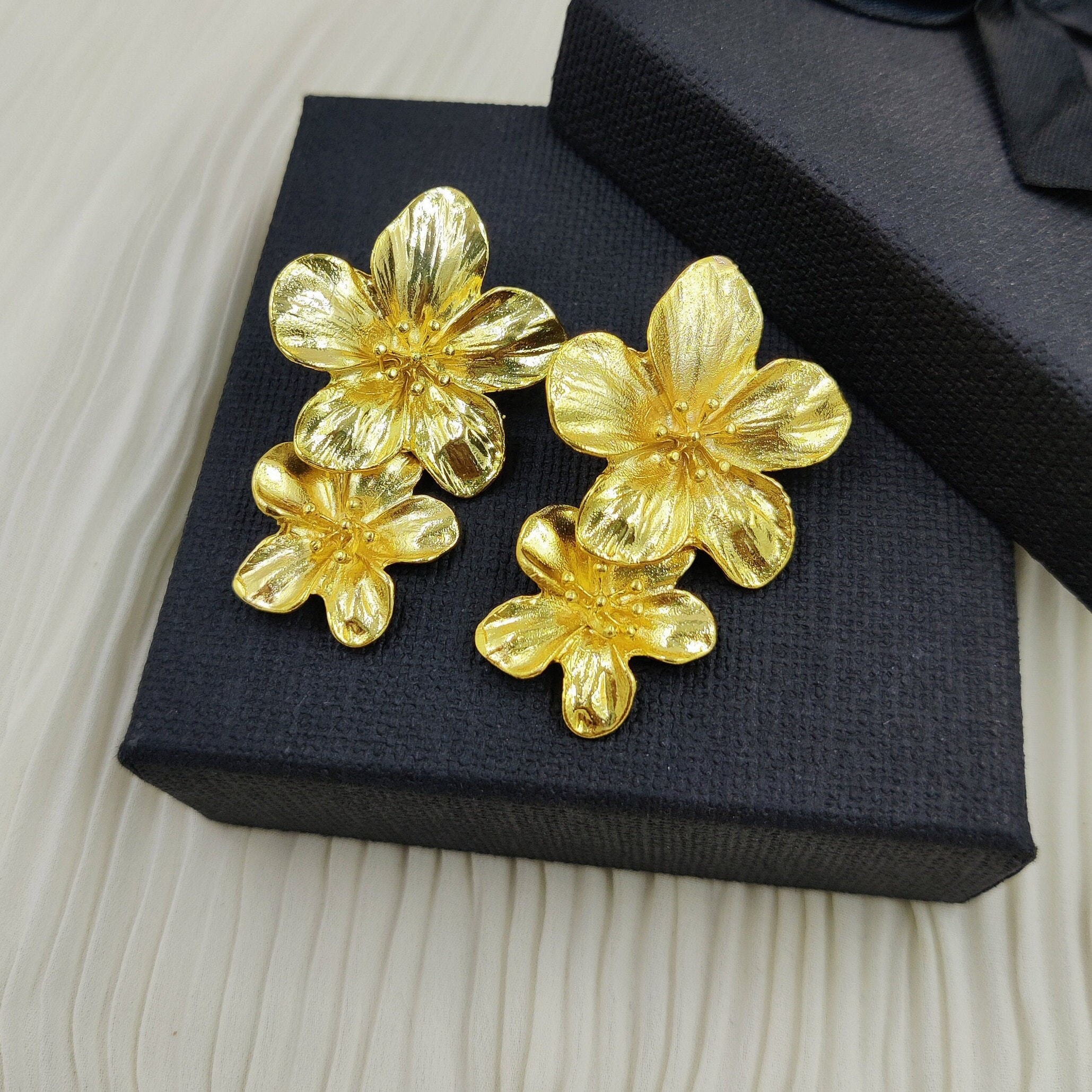 Hibiscus Flower Earrings | 50mm 22Kt Gold Plated Handmade Designer ...