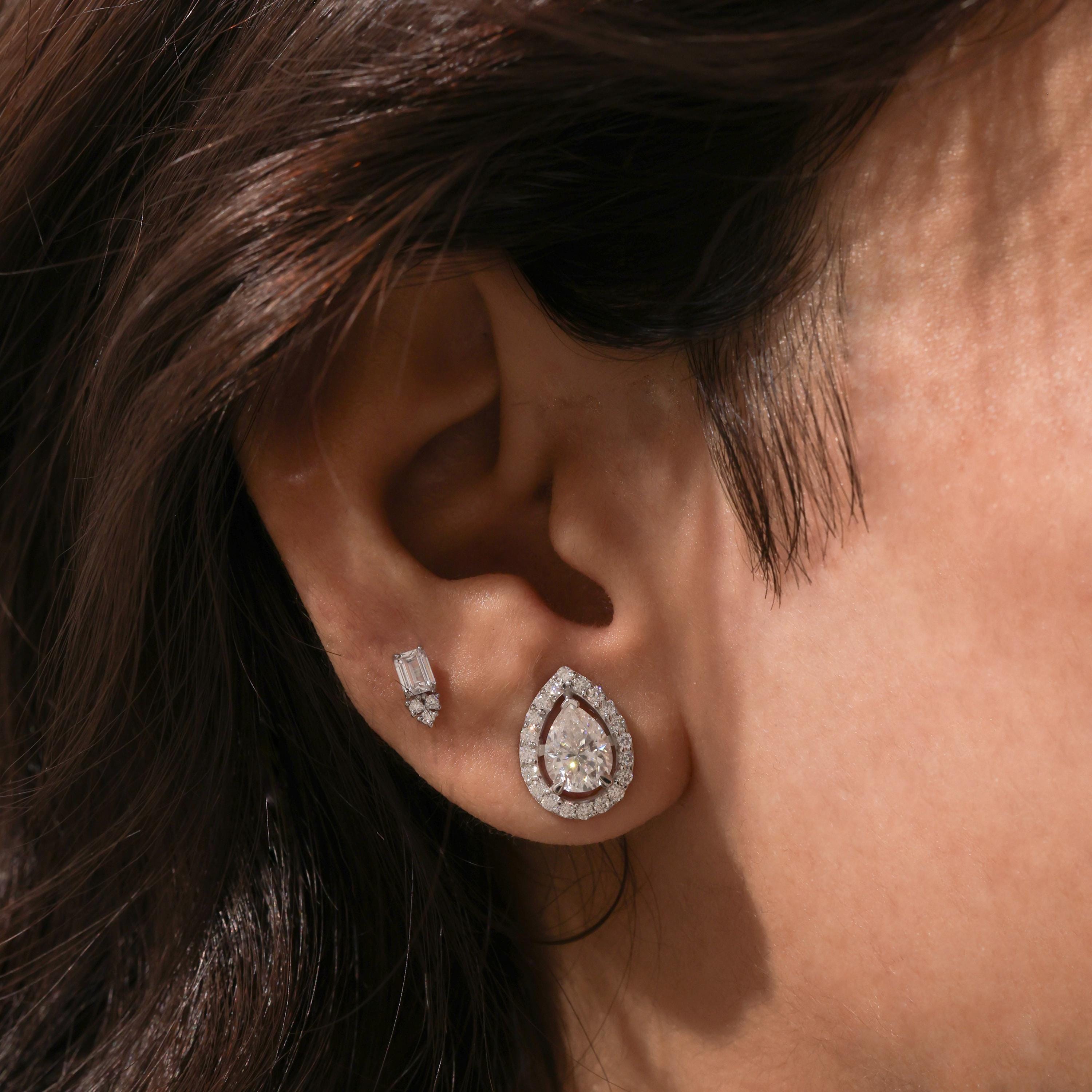 Pear Cut Diamond Stud Earring, Lab Grown Diamond Earring, Halo Diamond Stud, Diamond Earring For Wom...