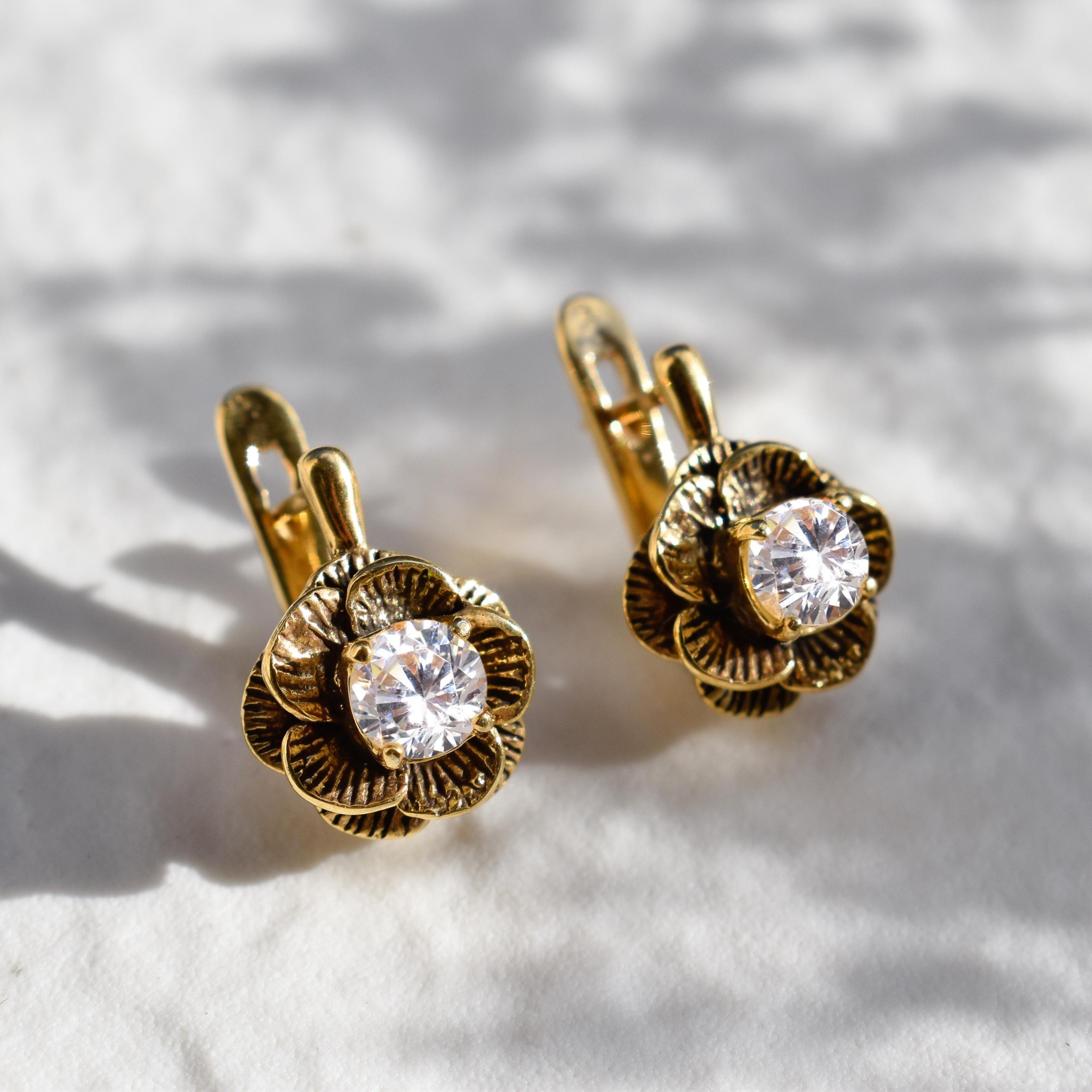 Gold Diamond Earrings, Created Diamond, Rose Diamond Earrings, Diam...