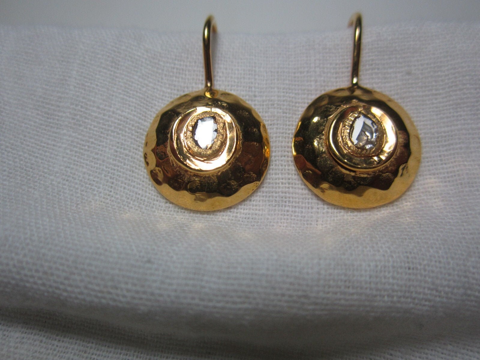 diamond earrings,diamond hammered earrings,diamond gold polish earr...