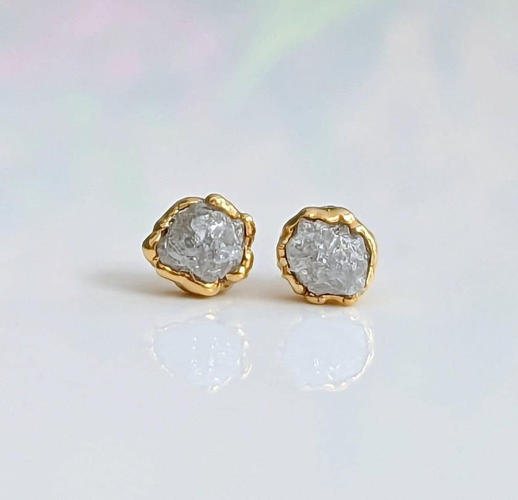 Raw diamond stud earrings, Rough diamond earrings, Uncut diamond je...