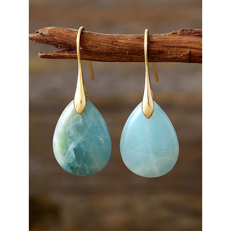 Women's Teardrop Shape Natural Stone Earrings with Gold Hook - Eleg...
