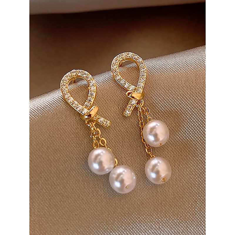 Women's imitation pearl earrings with rhinestone teardrop design, E...