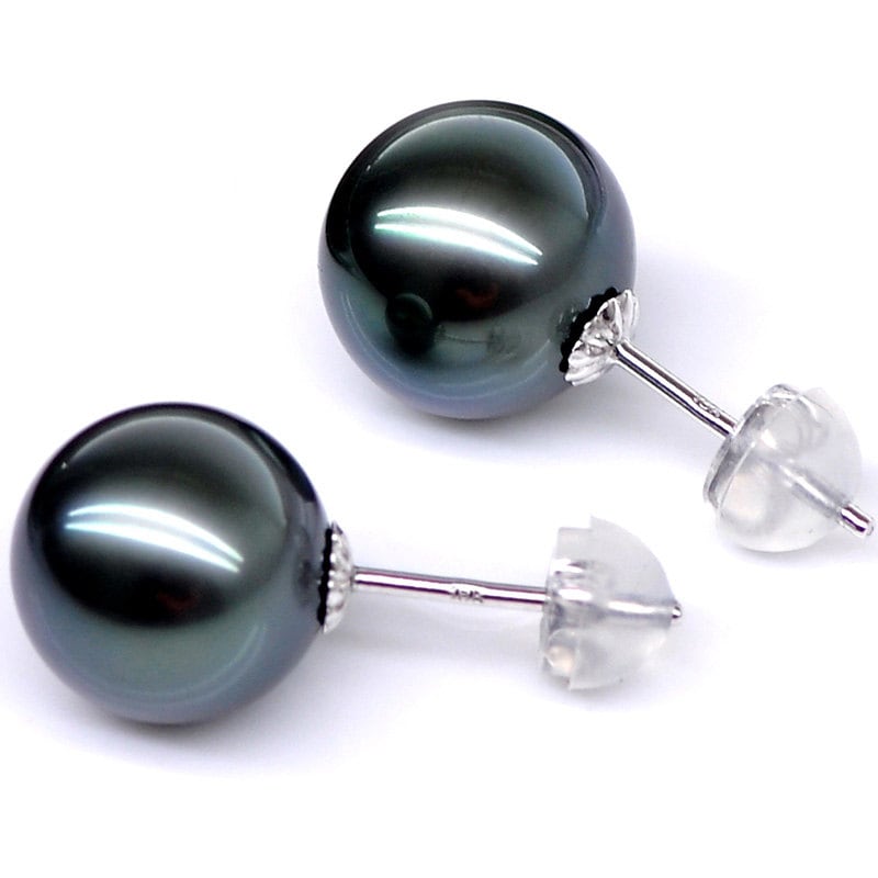 8mm Black Pearl Earrings are extremely rare, The Tahitian pearl earrings are known for having the be...