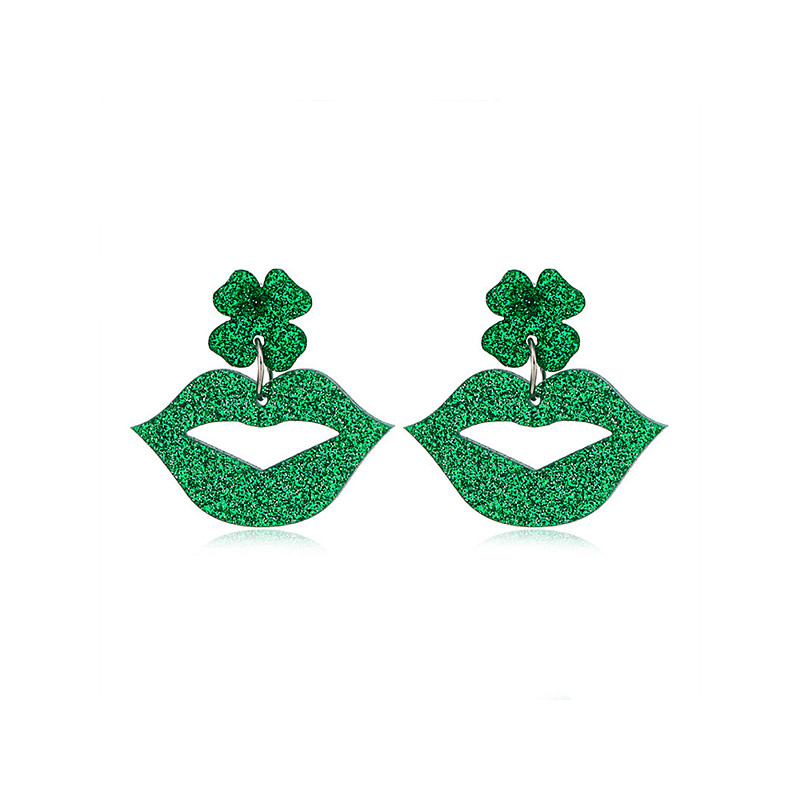 St. Patrick's Day Green Glitter Hat Earrings – Shamrock Desig...
