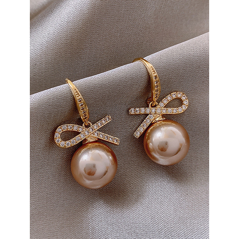 Women's Christmas Earrings with Rhinestone Bow and Pearl Drop, Fest...