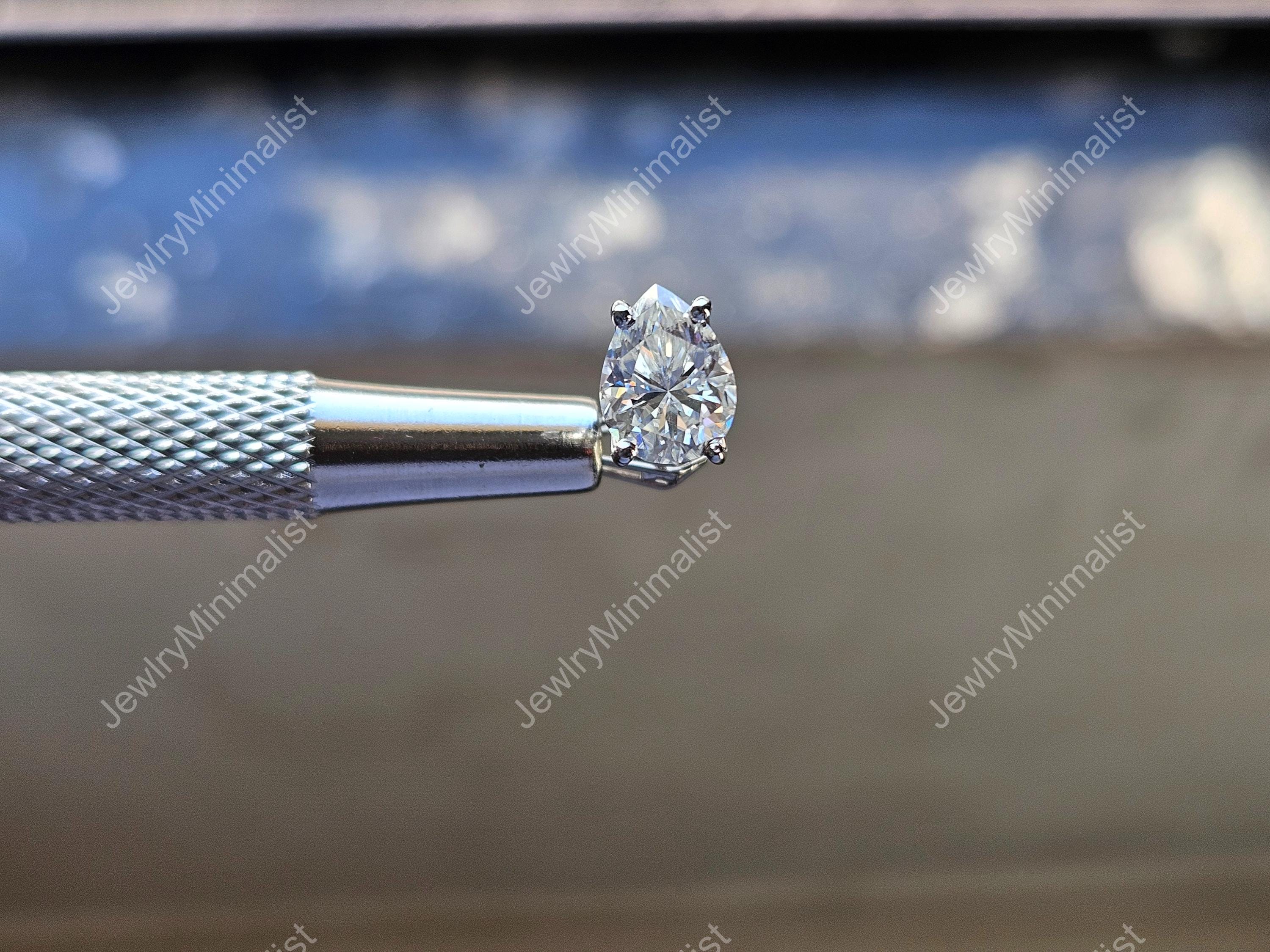 14K Solid White Gold Wedding Ring, 2.0 Ct Pear Cut Lab Grown Engage...