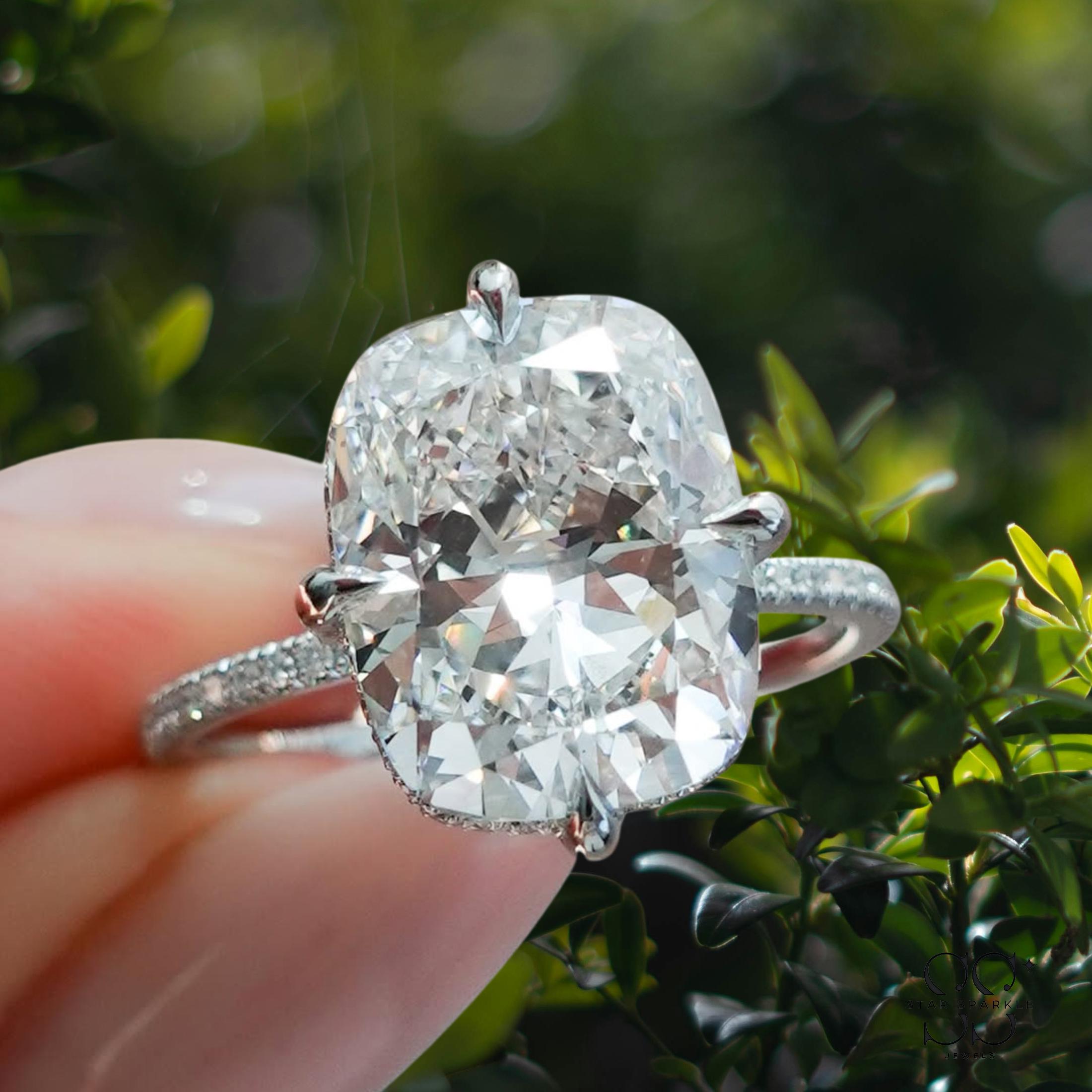 4CT Elongated Cushion Cut Moissanite Engagement Ring features a crushed ice sparkle that dazzles wit...