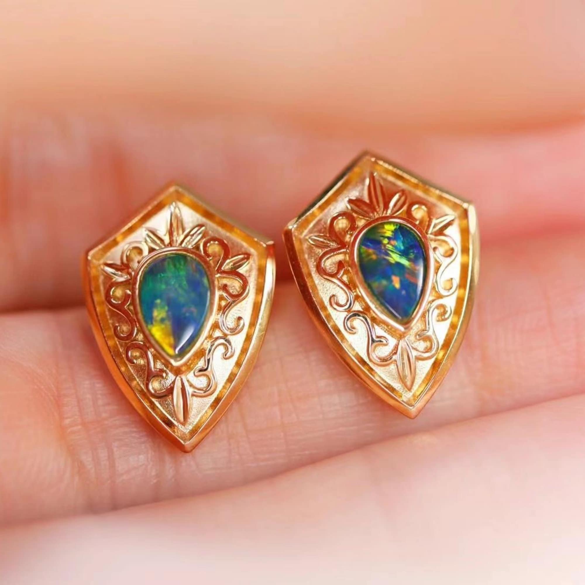18k Gold Australian Opal Stud Earrings-Opal Shield Jewelry/Australi...