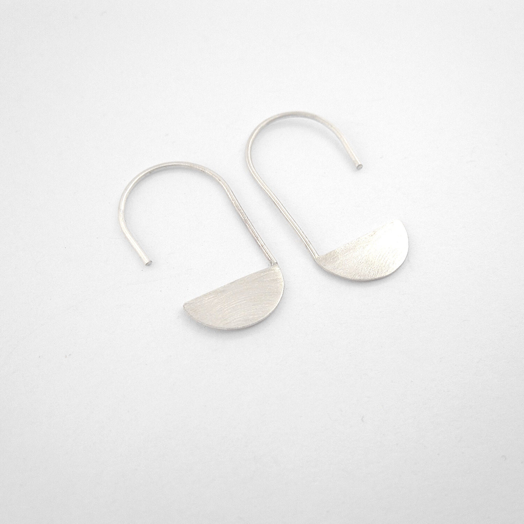 Silver Crescent moon earring circle Dangle sterling silver half cir...